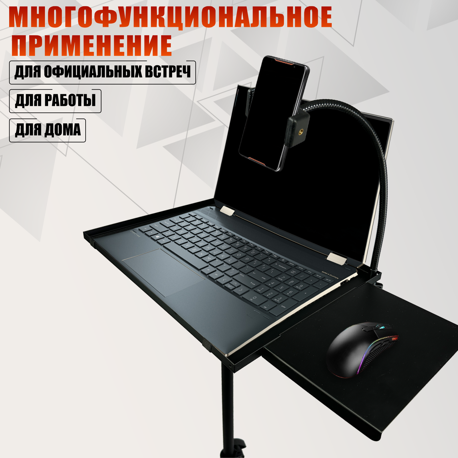 Напольная стойка подставка для ноутбука и мыши с держателем телефона интересное: