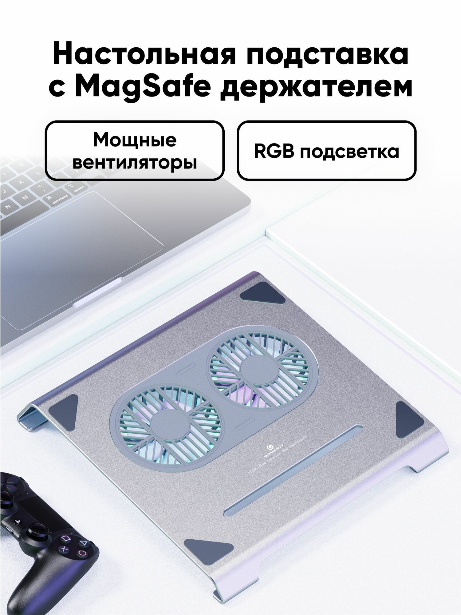 Подставка для ноутбука с охлаждением, 2 порта USB-A, LED-подсветка, 352х252 мм, BRAUBERG, 513617