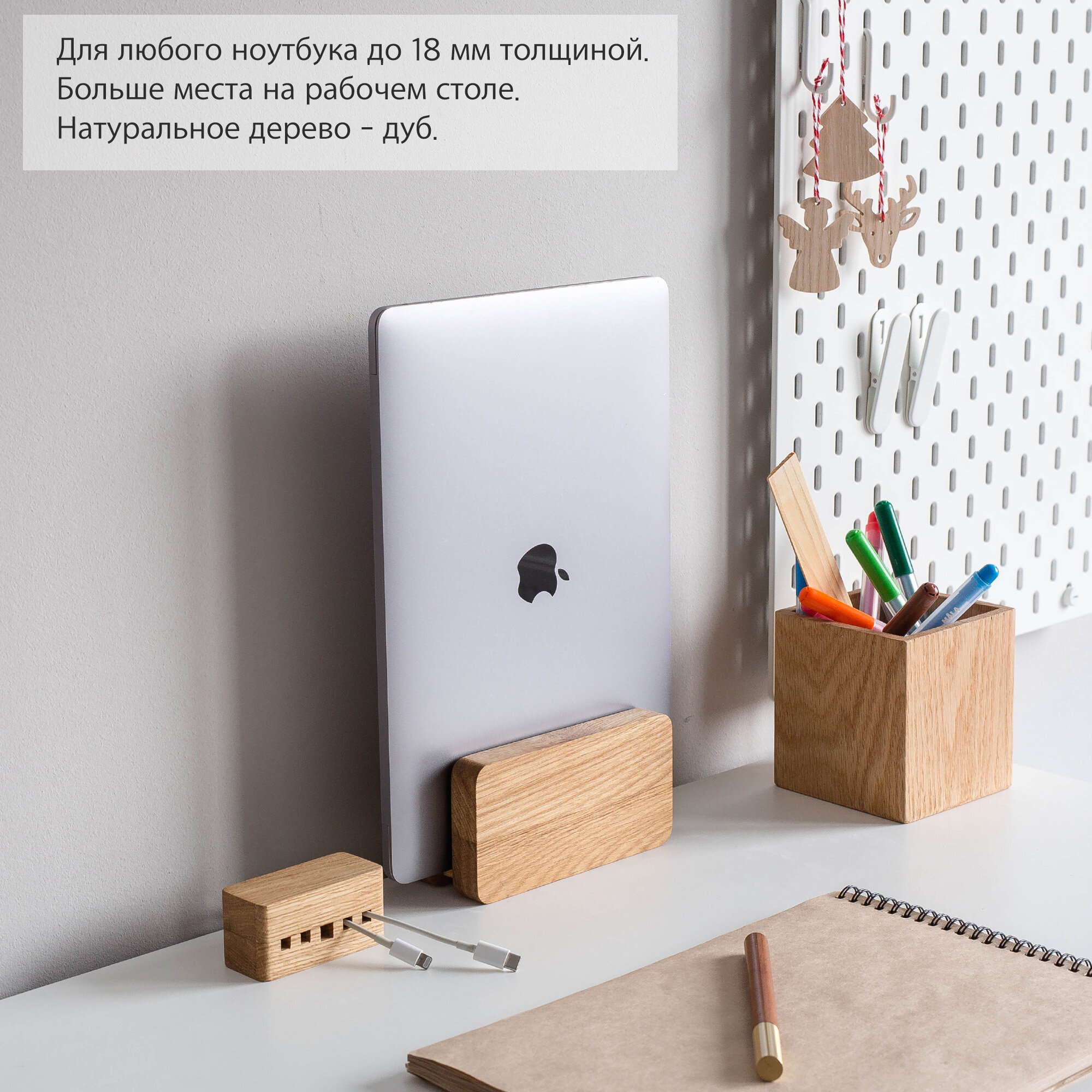 Дизайнерская, вертикальная подставка из дуба, подойдет для любого ноутбука толщиной до 18 мм. интересное: