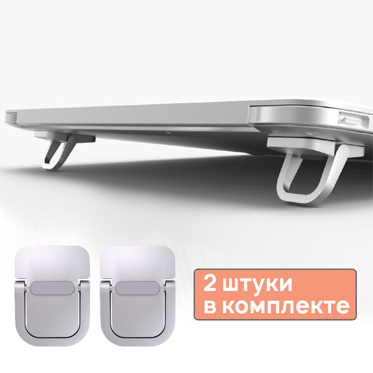 Ножки для ноутбука на 2 угла наклона - складные, серебристые, АБС пластик - комплект 2 шт.