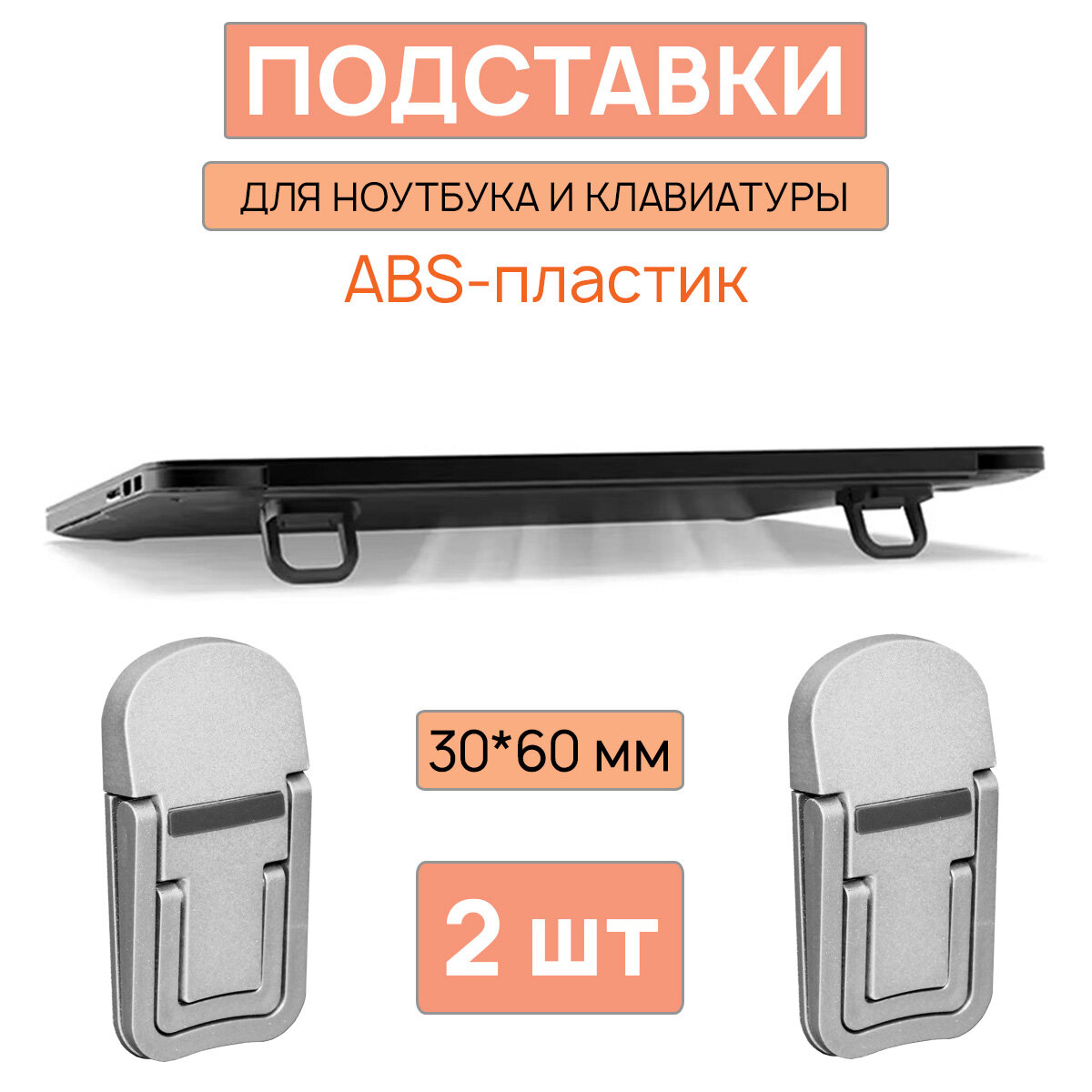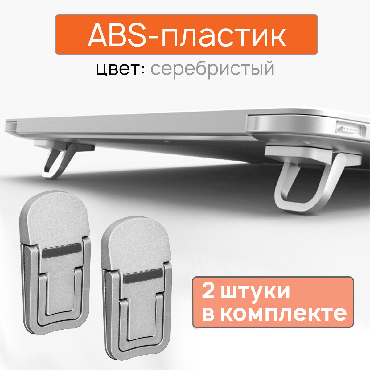 Купить Ножки для ноутбука на 2 угла наклона - складные, серебристые, АБС пластик - комплект 2 шт.