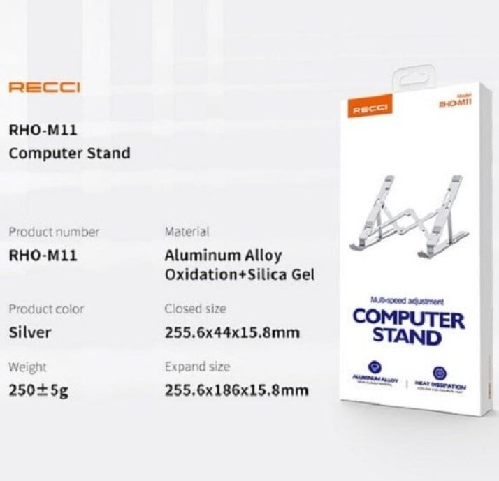 Купить Подставка для ноутбука Recci Multi-speed Adjustment Computer StandR, Складная, Алюминий, Серебристый, RHO-M11