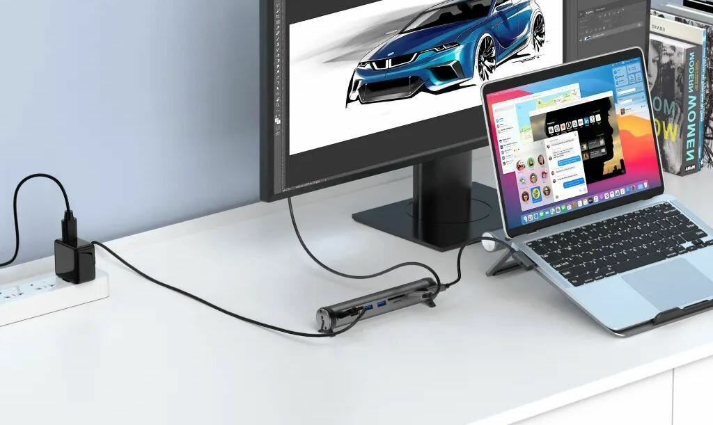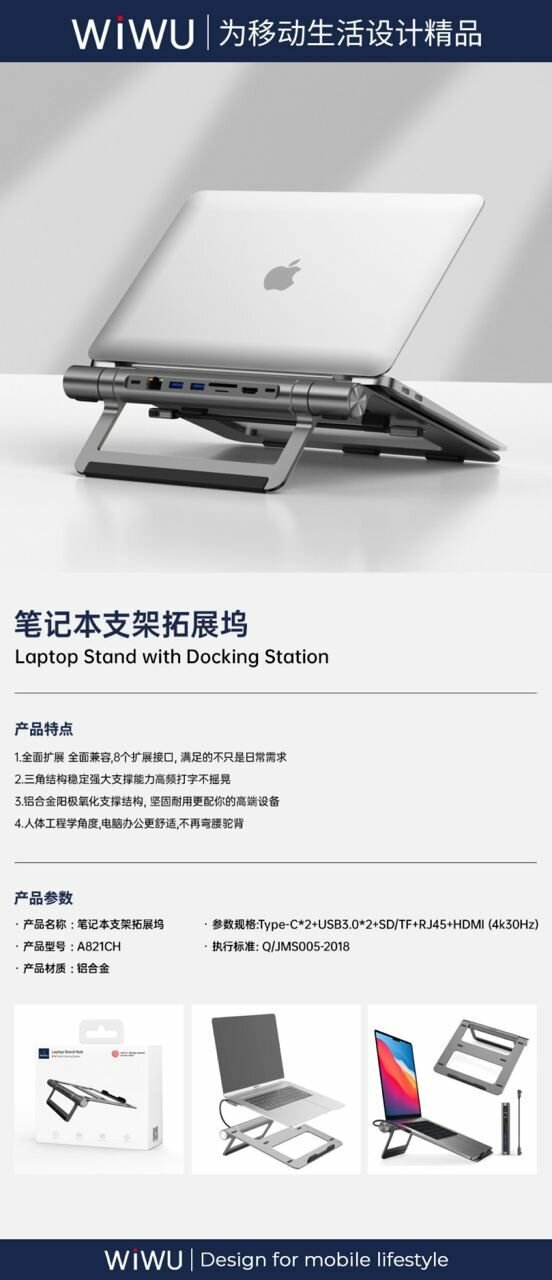 Подставка-переходник-хаб WiWU A821CH Laptop Stand Hub 8 in 1 USB-C Docking Station - Space Grey интересное: