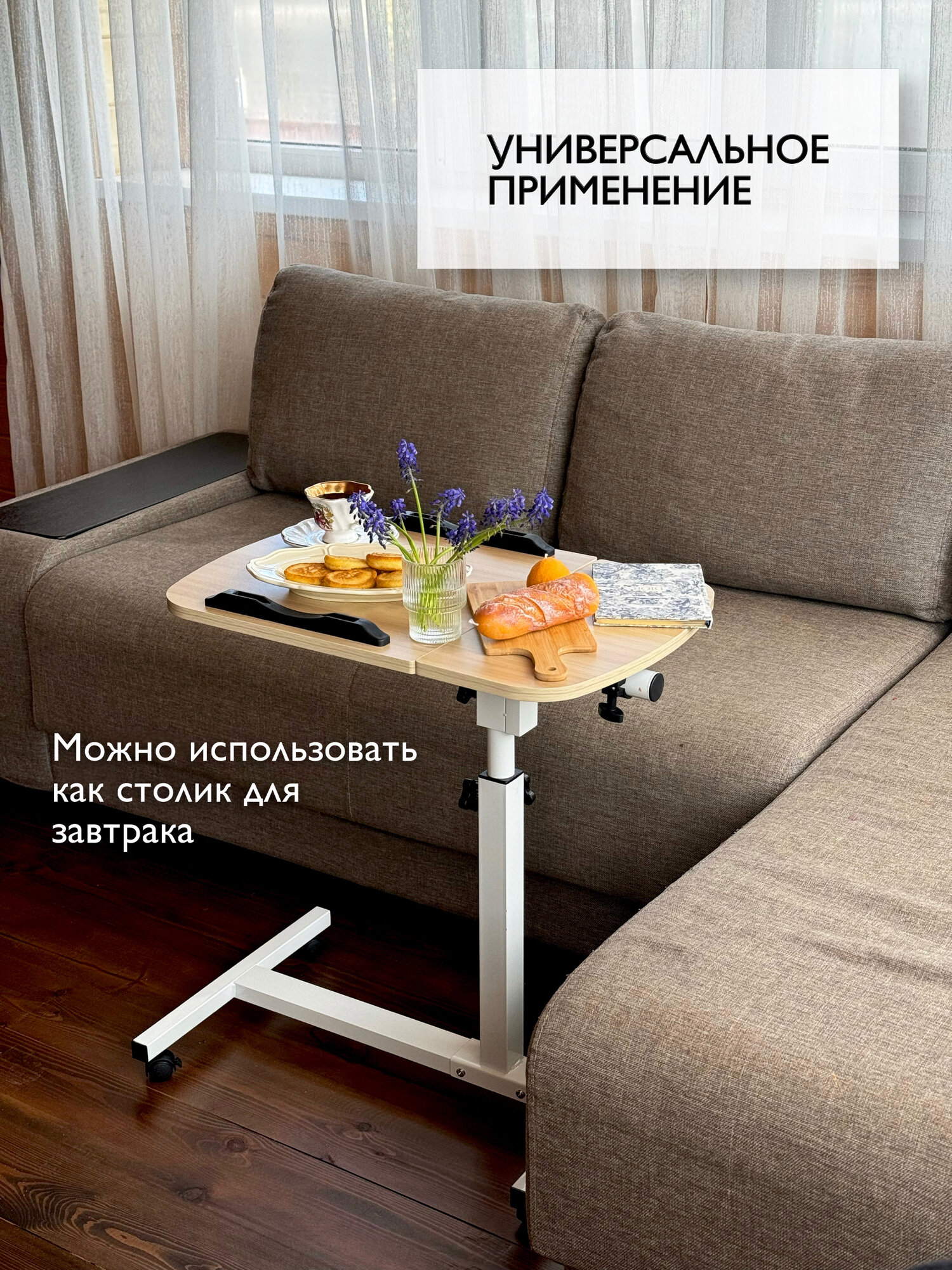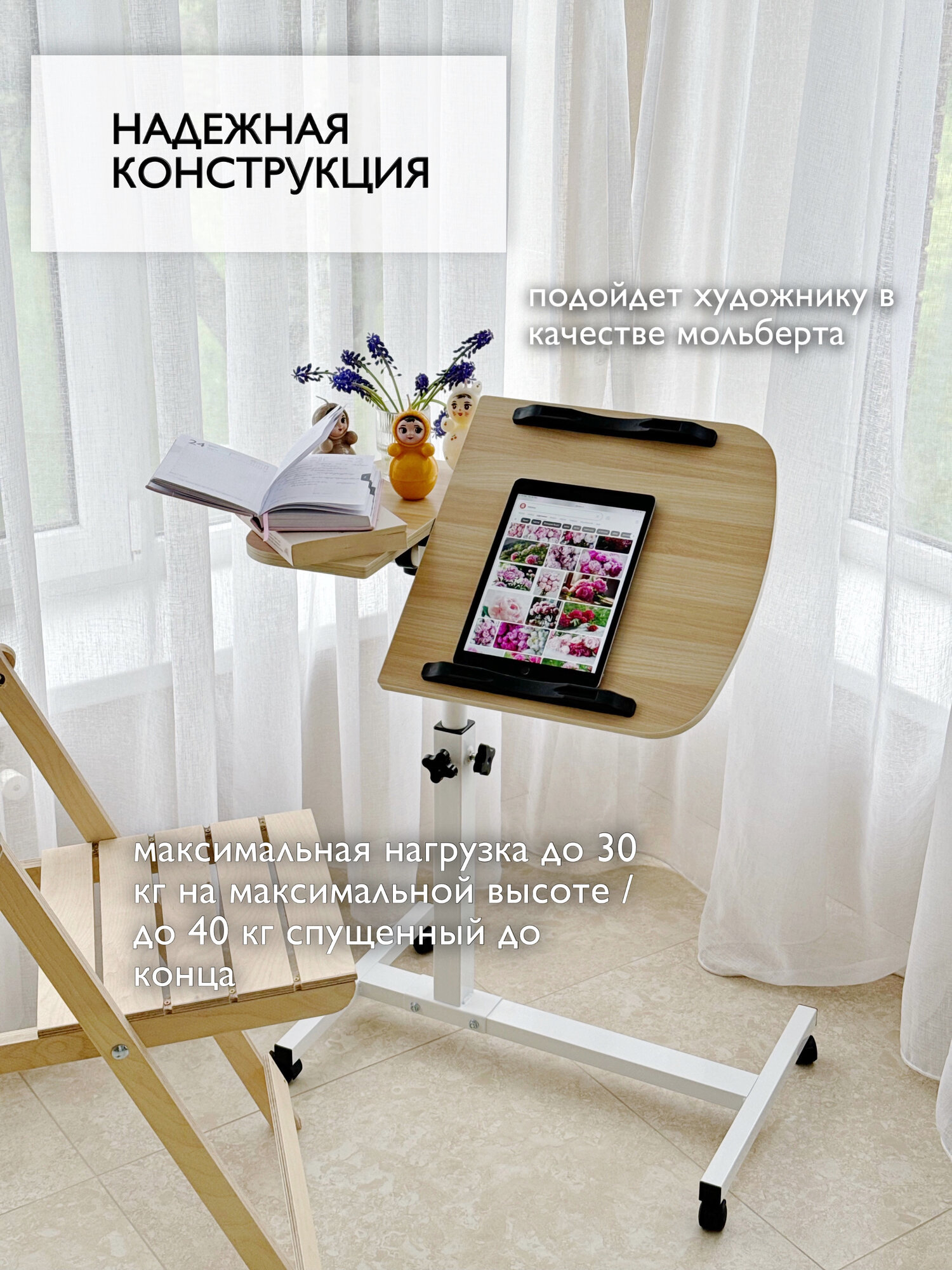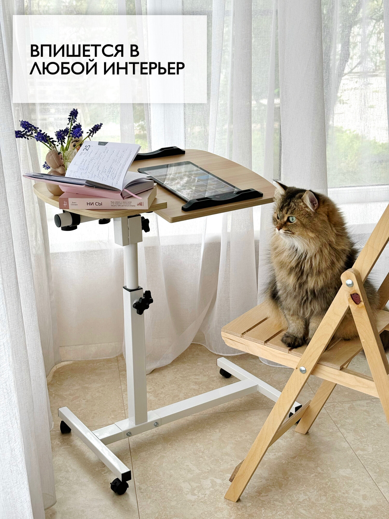 Столик для ноутбука WELHOME складной прикроватный на колесиках, стол компьютерный, бежевый интересное: