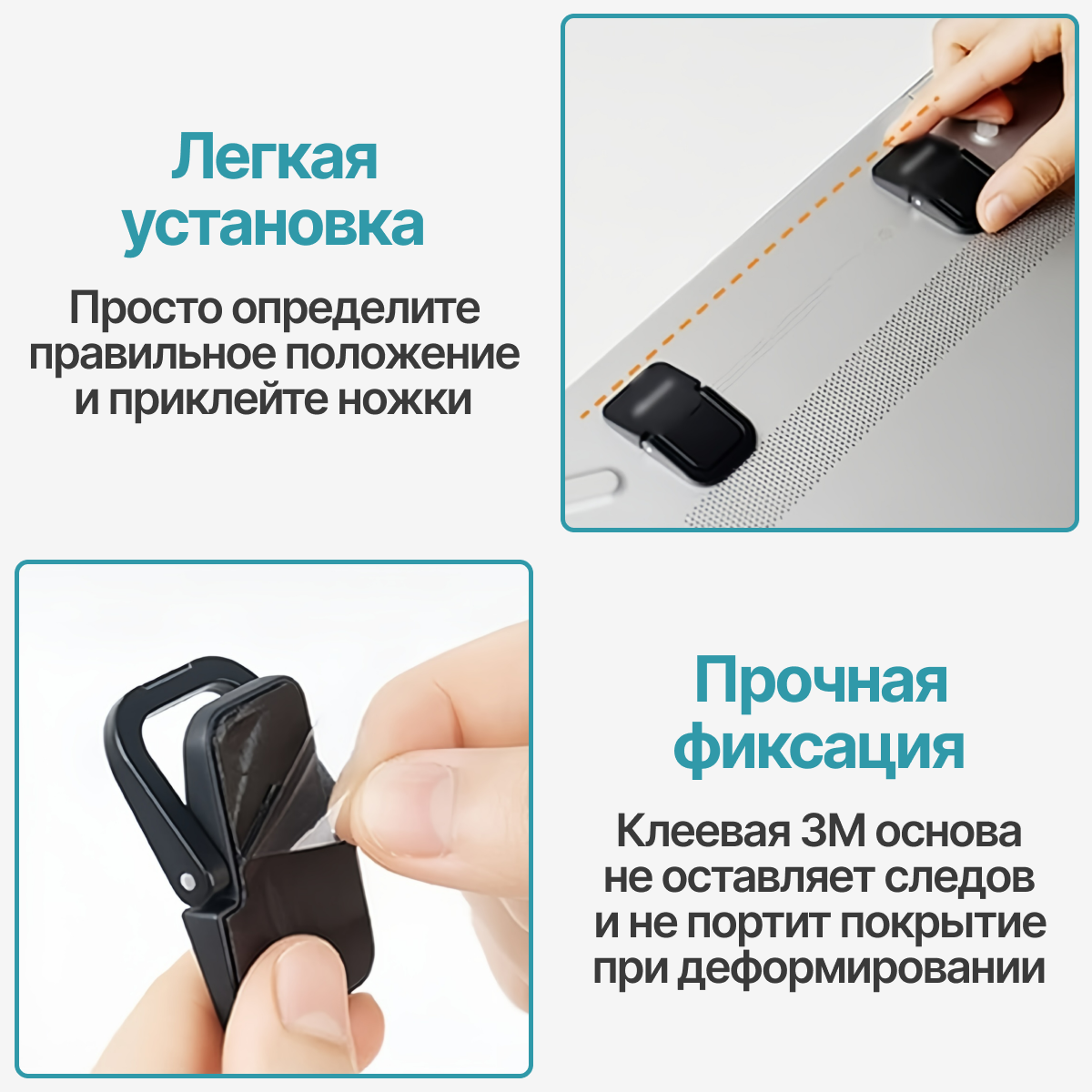 Купить Подставка для ноутбука/ Ножки для ноутбука и макбука, складные, портативные, чёрные, 2 штуки