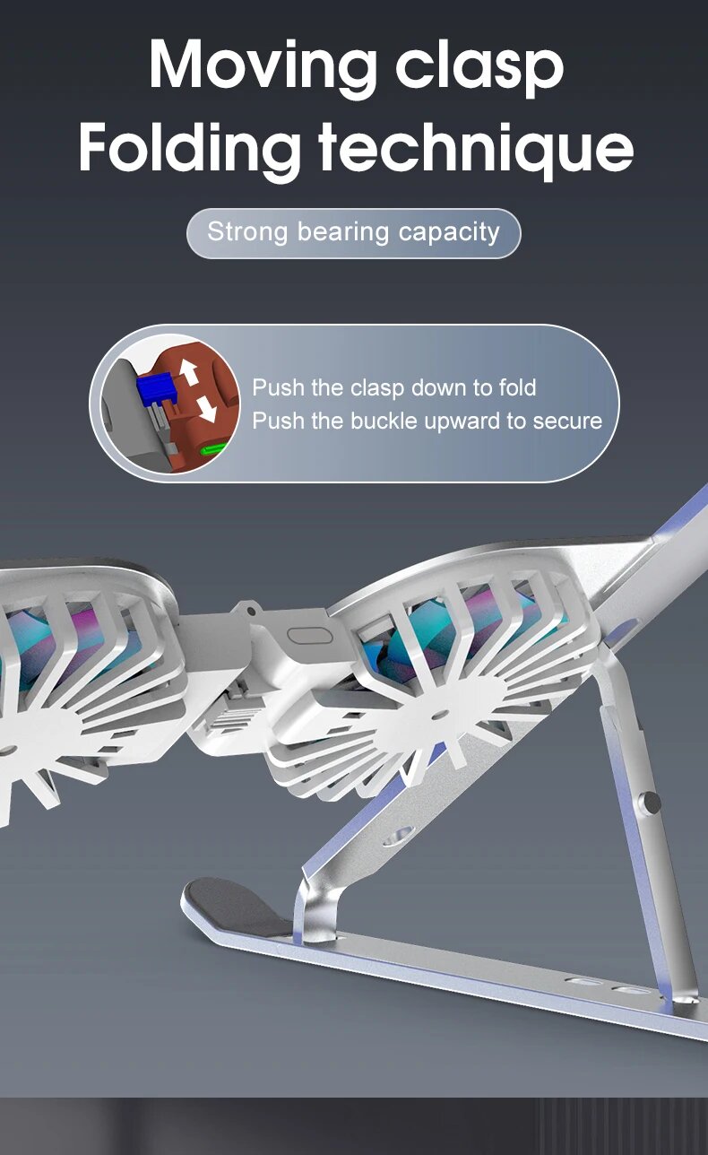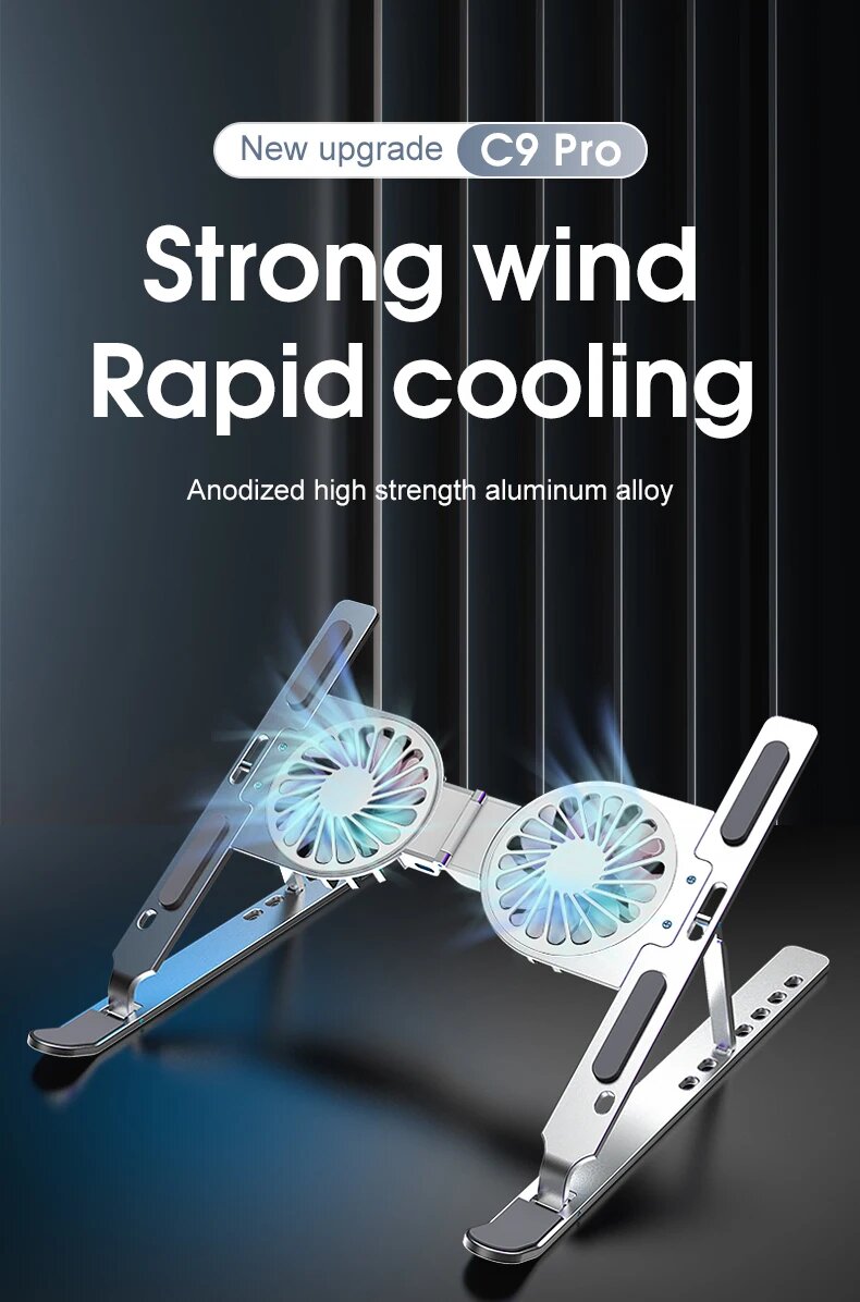 Регулируемая охлаждающая подставка для ноутбуков, 2 вентилятора, подсветка, 5 углов наклона, держатель для смартфона, 2 USB , для экрана 13"-19"