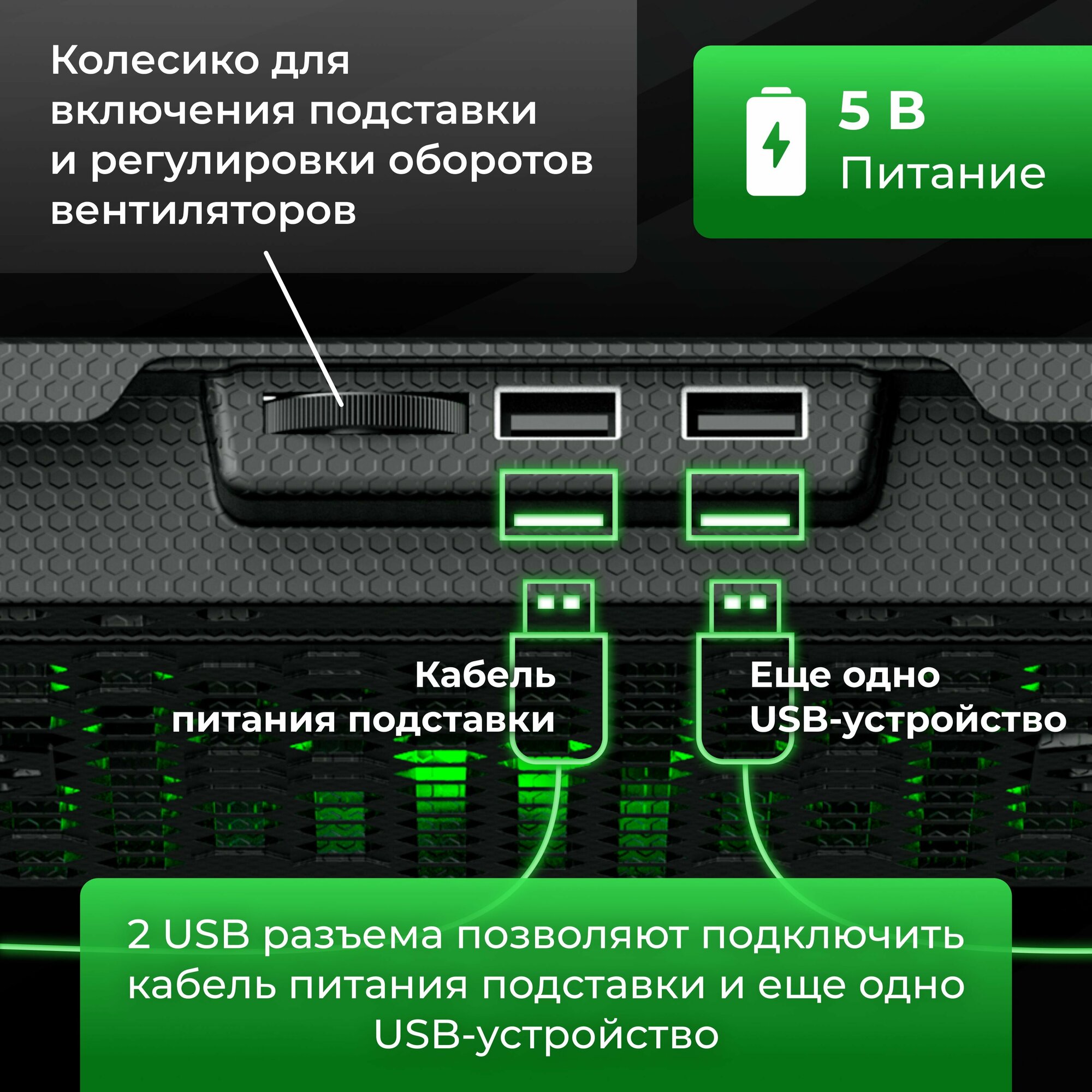 Подставка для ноутбука охлаждающая 17.3 MIRU CP1702 Greenice, подсветка интересное: