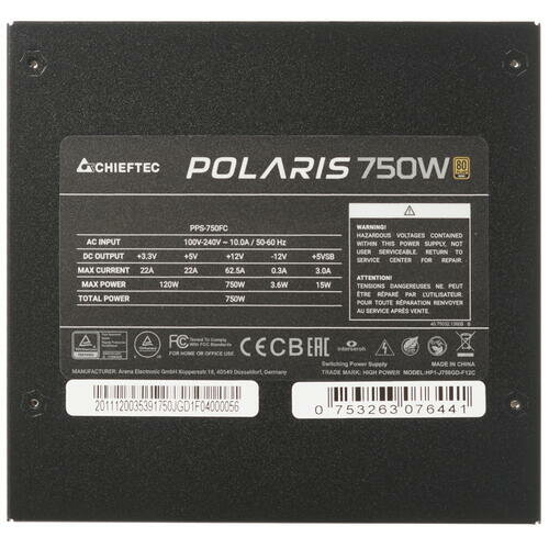Блок питания Chieftec Polaris, 750W, 80+ Gold (PPS-750FC)