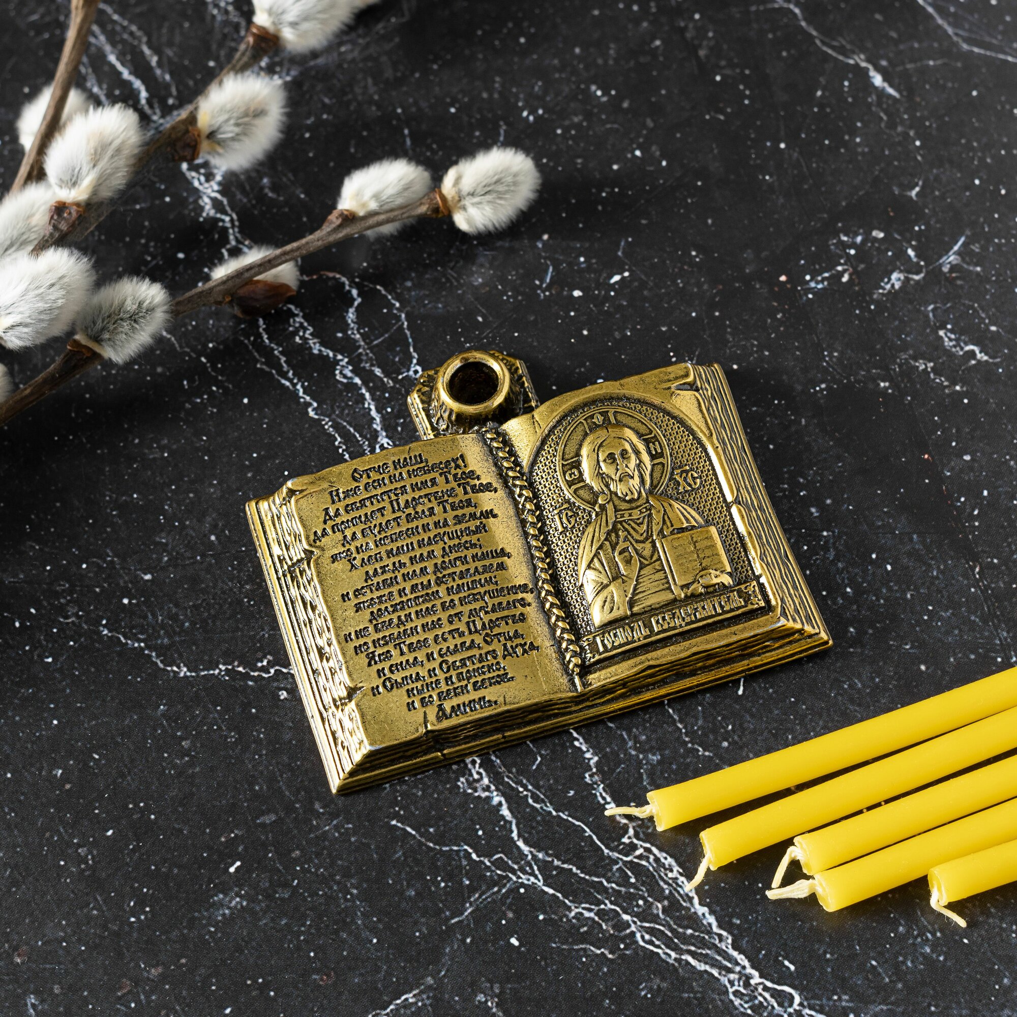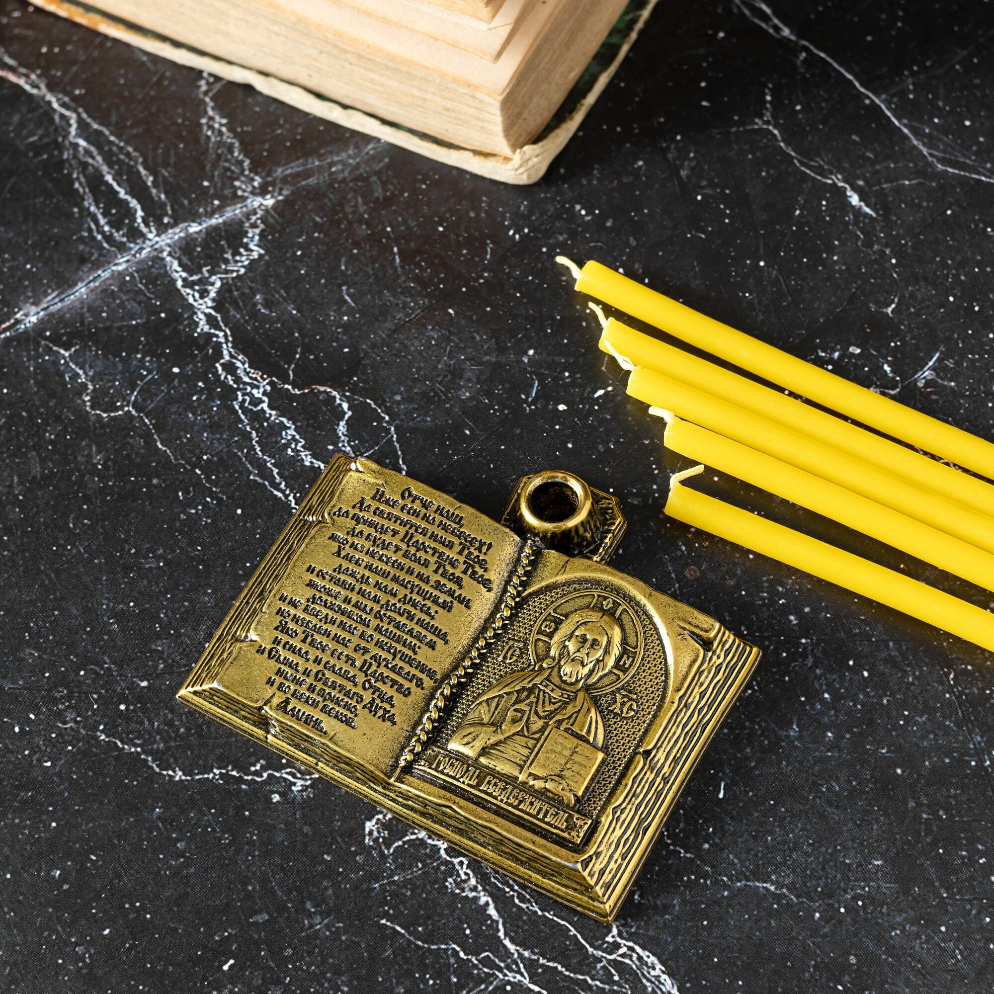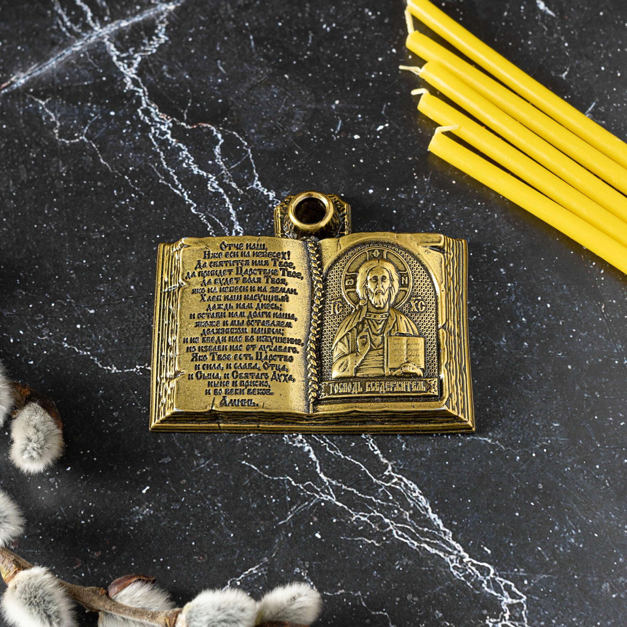 Подсвечник металлический для церковной свечи с иконой Господа Вседержителя интересное: