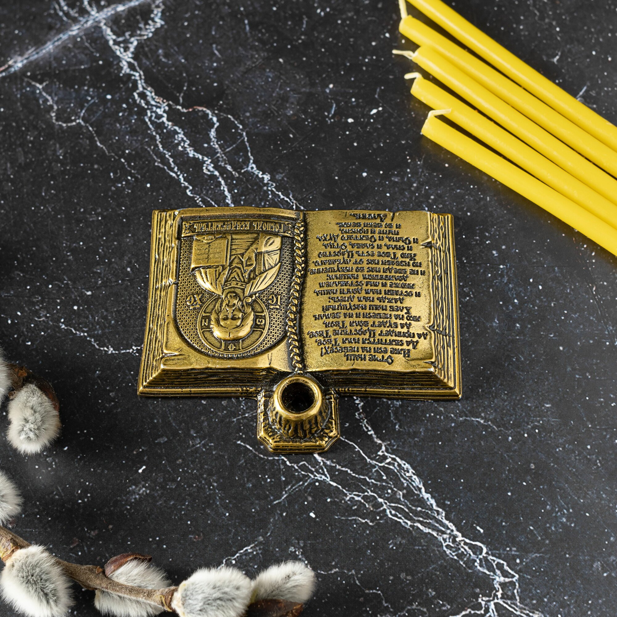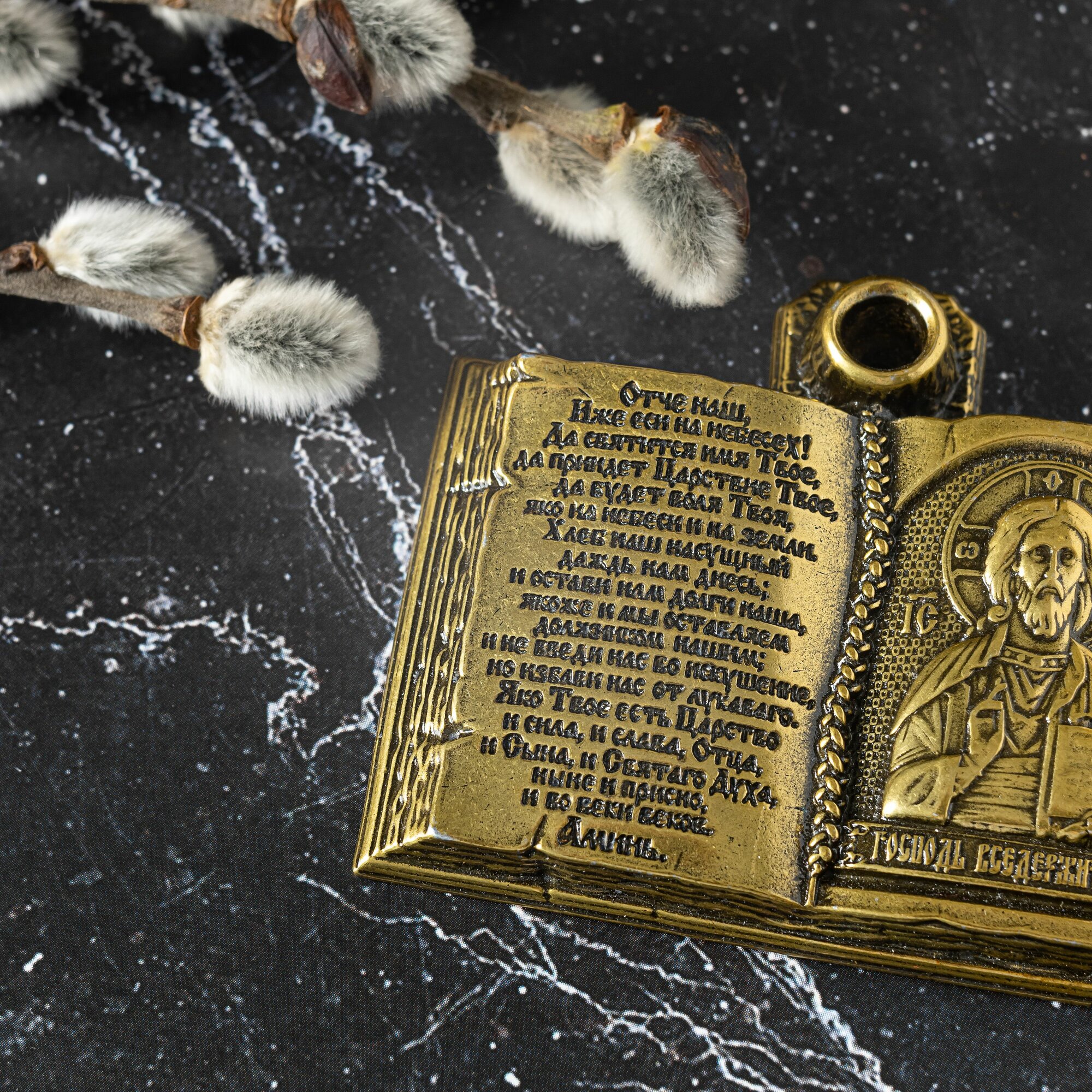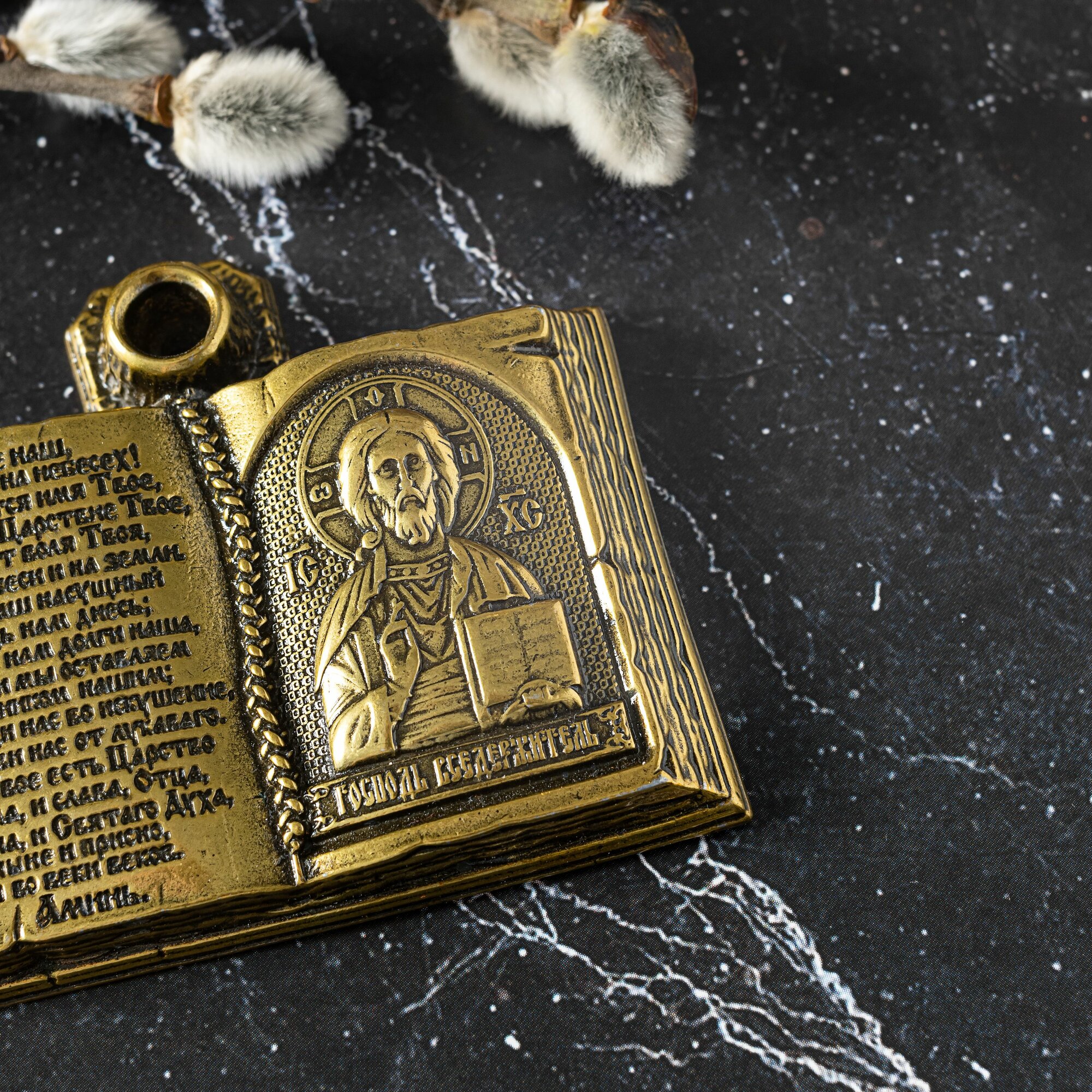 Подсвечник металлический для церковной свечи с иконой Господа Вседержителя интересное: