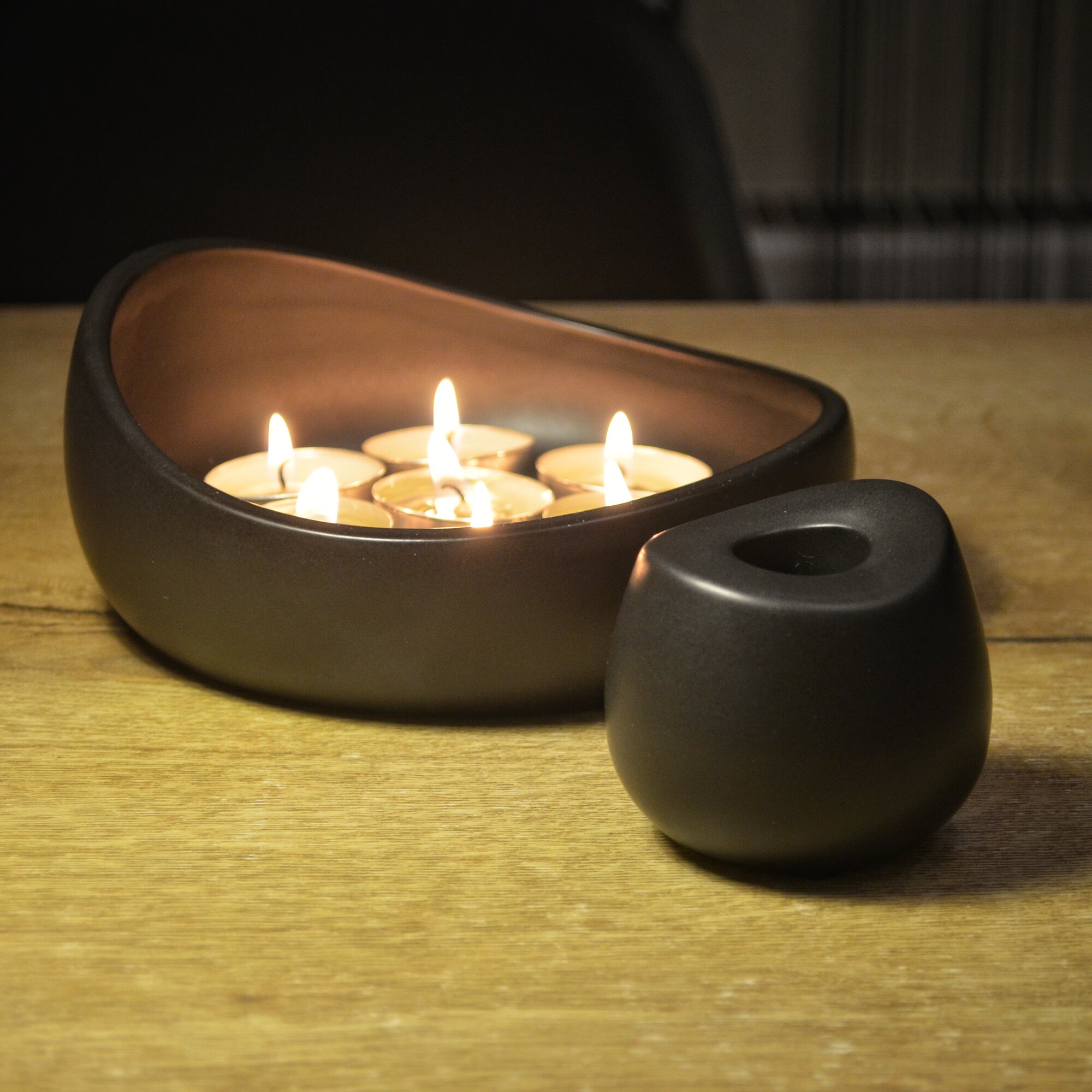Подсвечник декоративный GUINEA, керамика, оригинальная форма для свечи, цвет черный интересное: