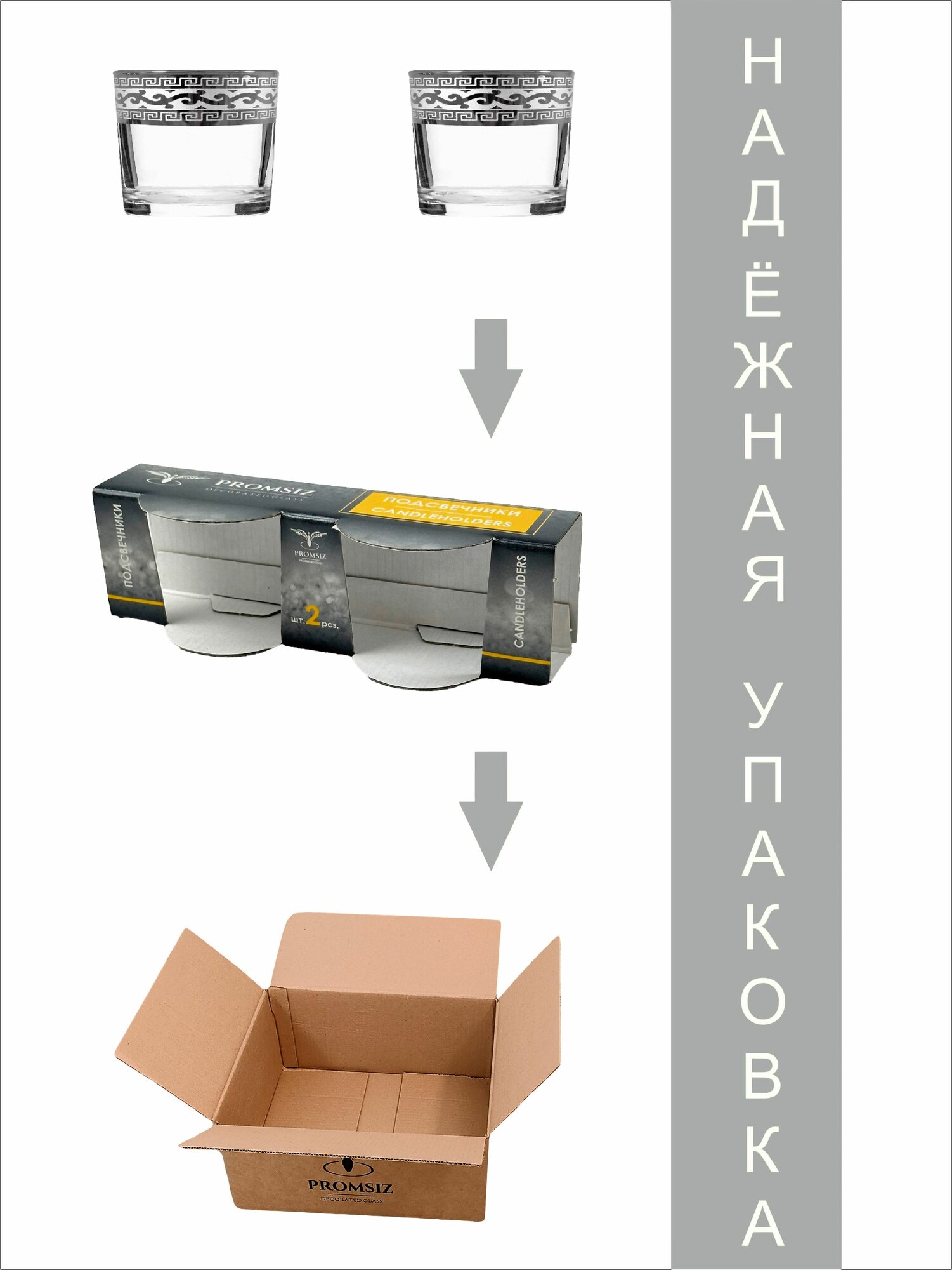 Подарочный набор стеклянных подсвечников PROMSIZ афина серебро, 2 шт.