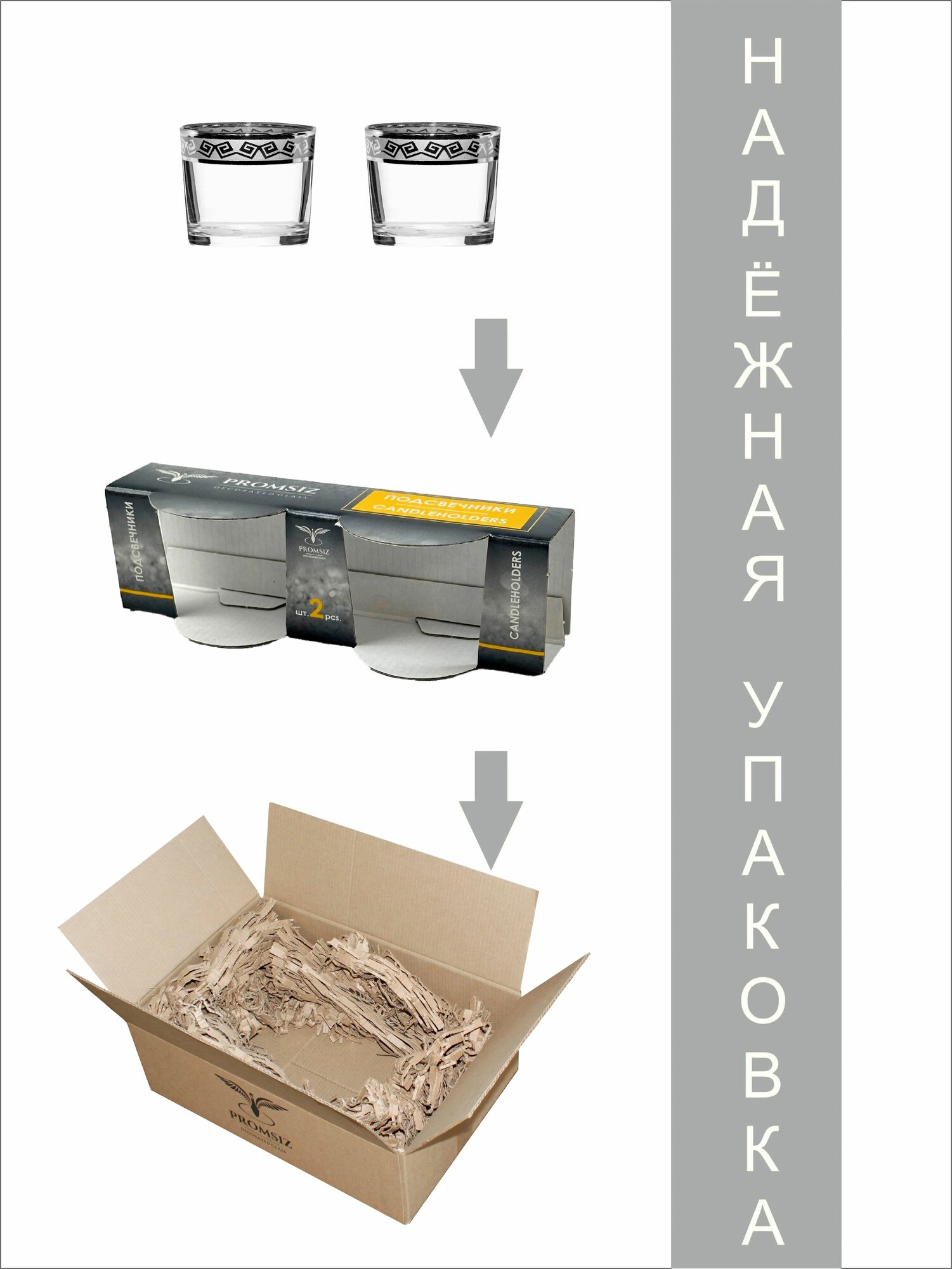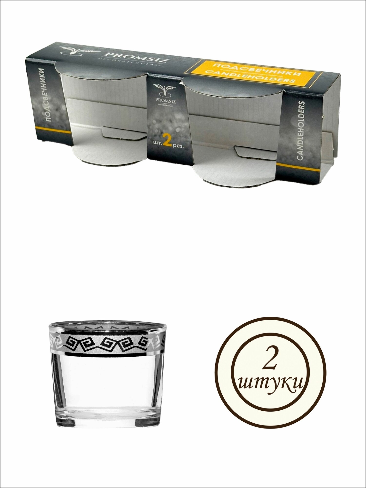 Купить Подарочный набор стеклянных подсвечников PROMSIZ афина серебро, 2 шт.