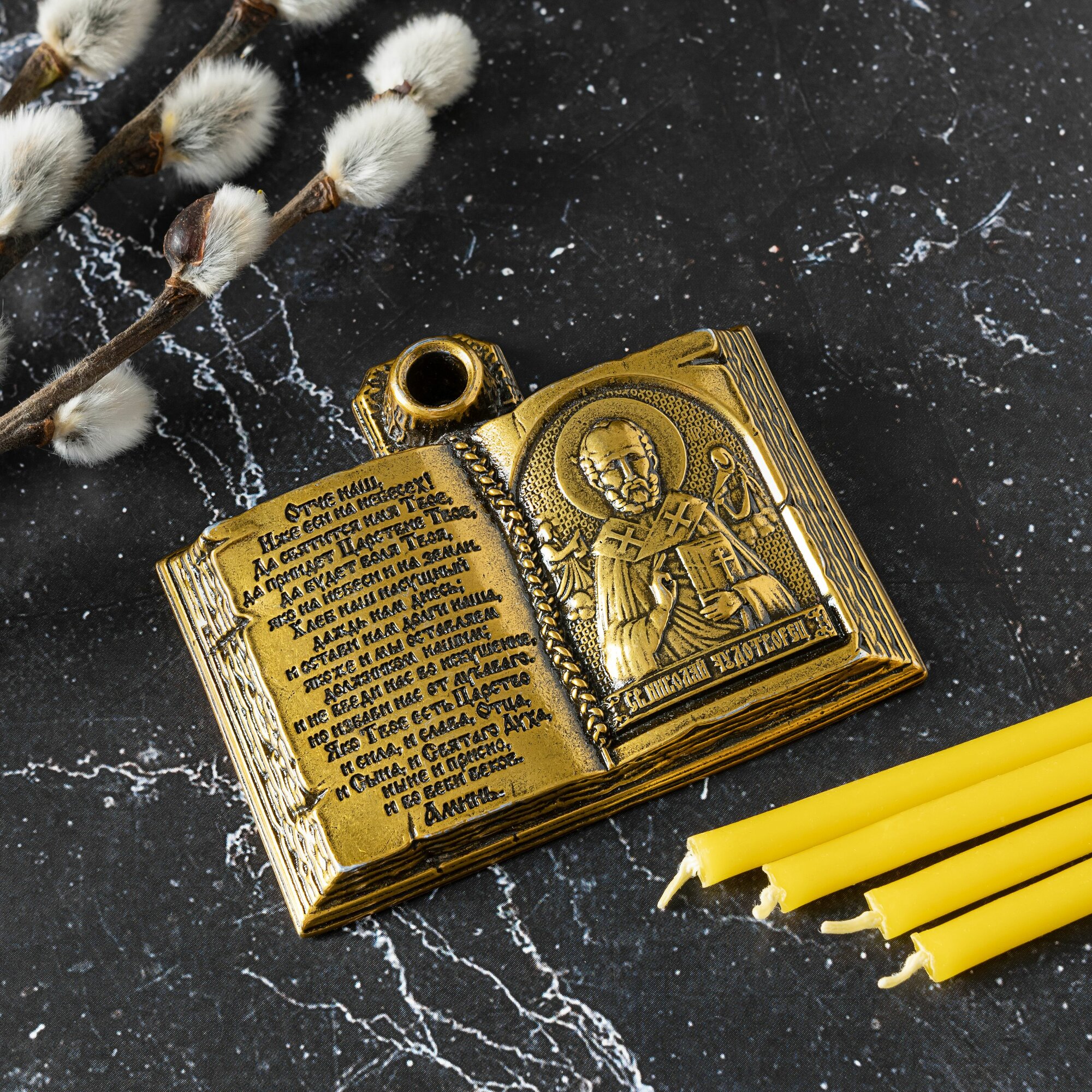 Купить Подсвечник для церковной свечи с иконой Николая Чудотворца