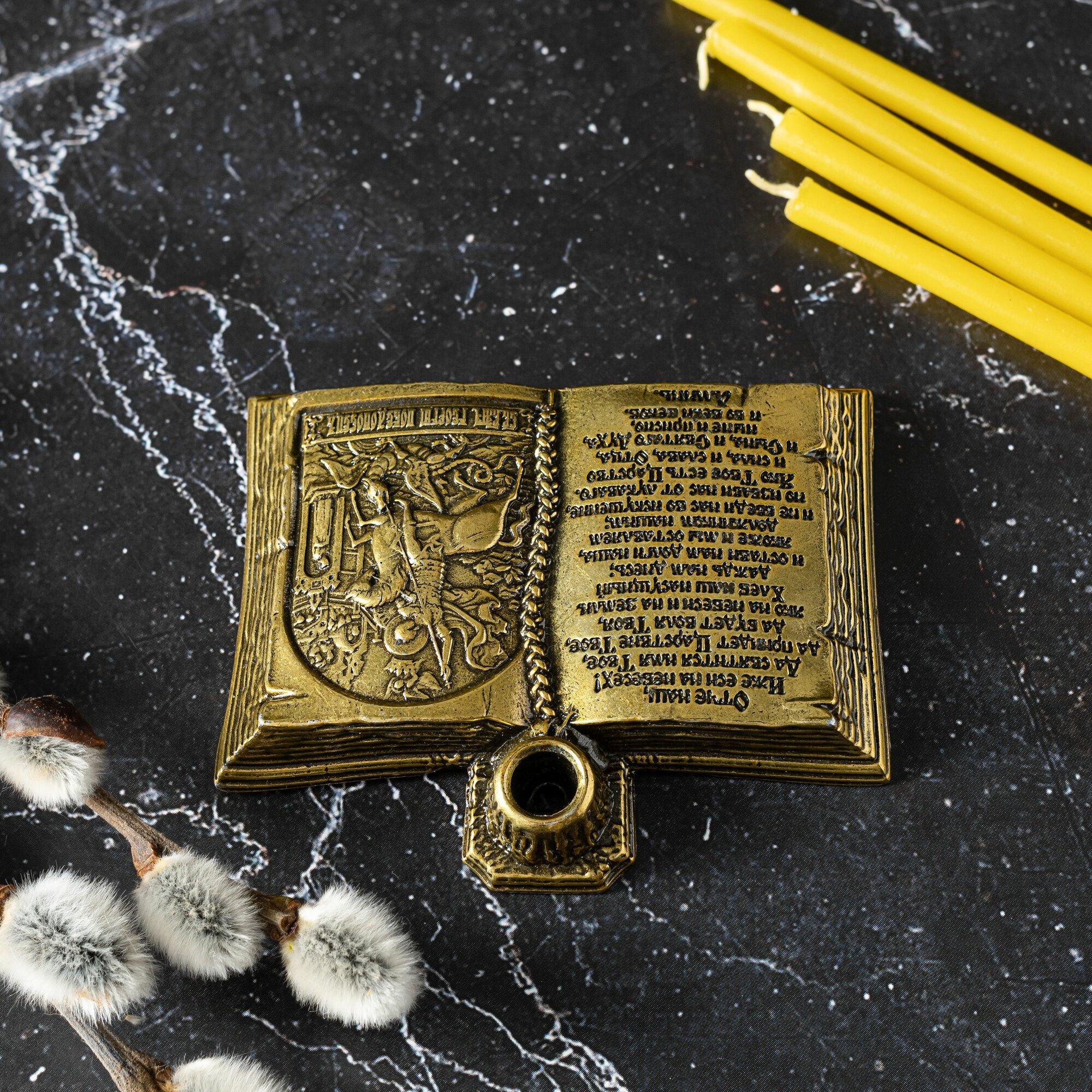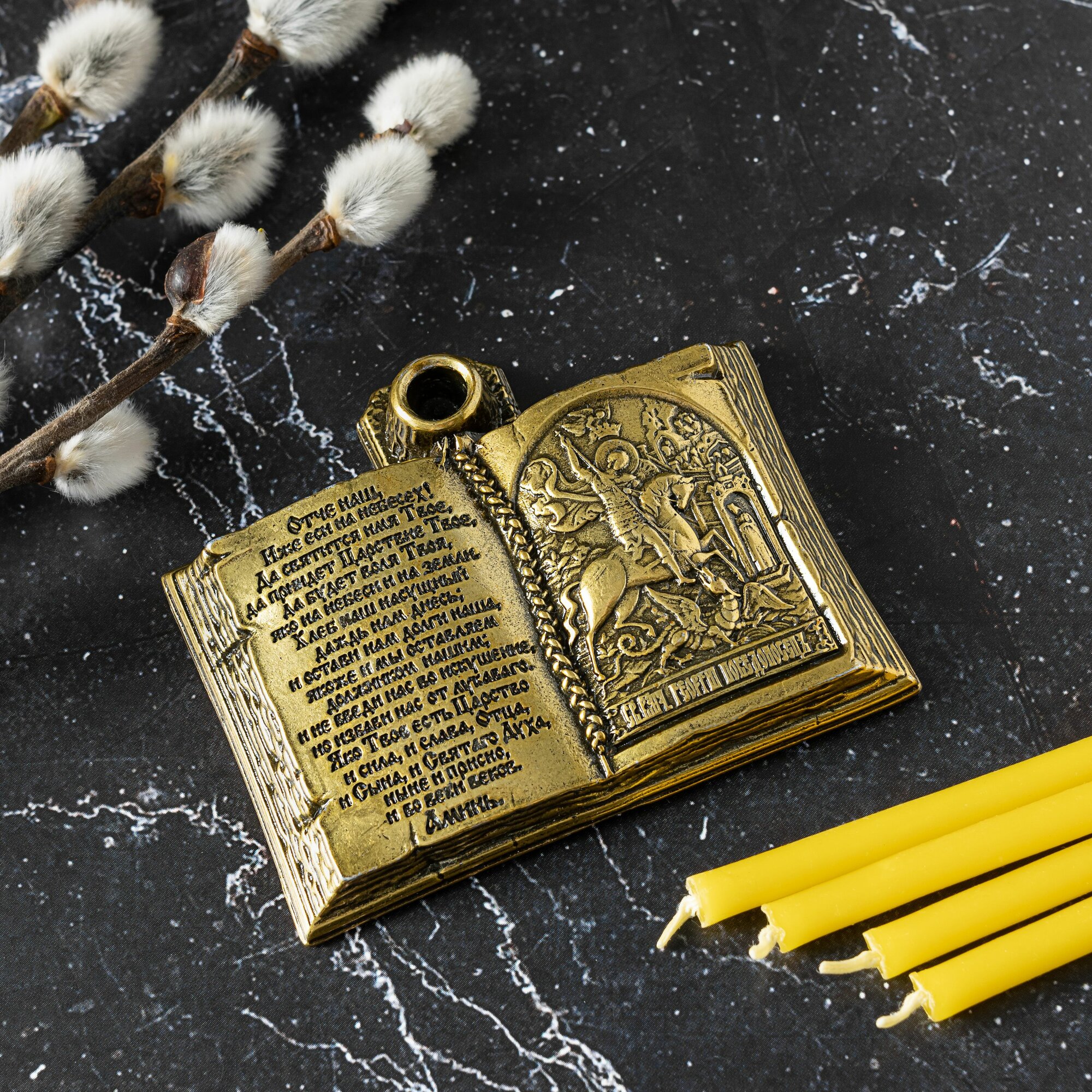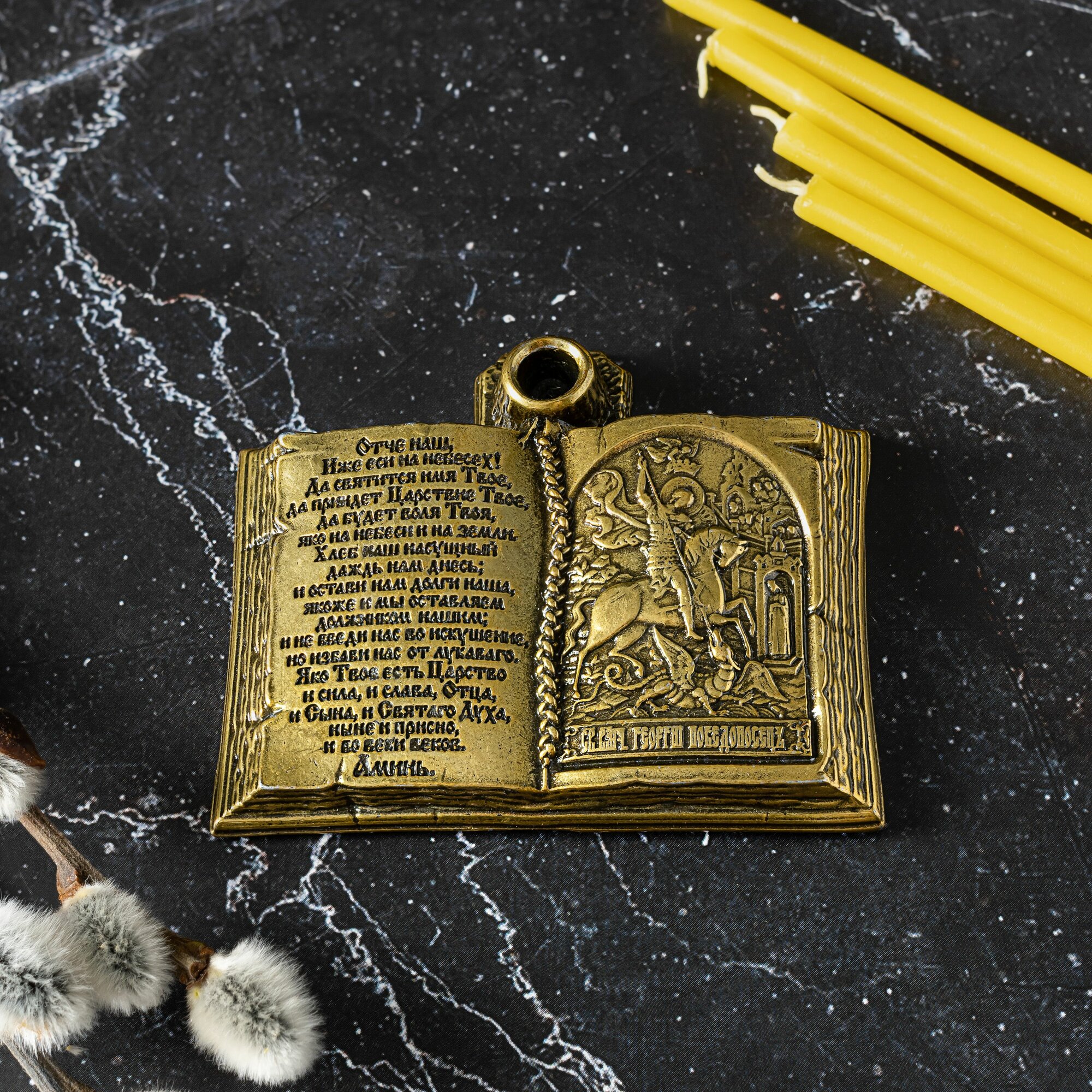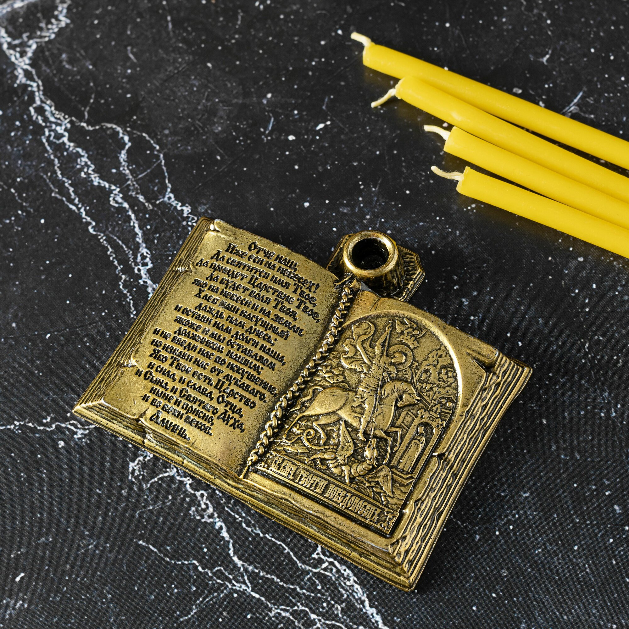 Подсвечник для церковной свечи с иконой Георгия Победоносца интересное: