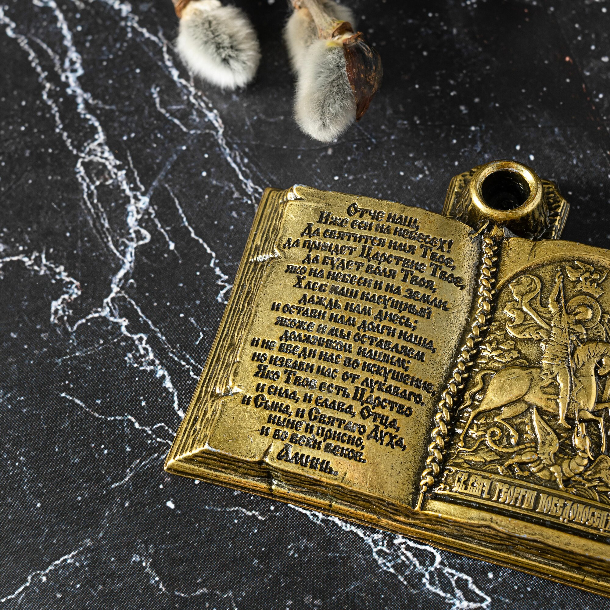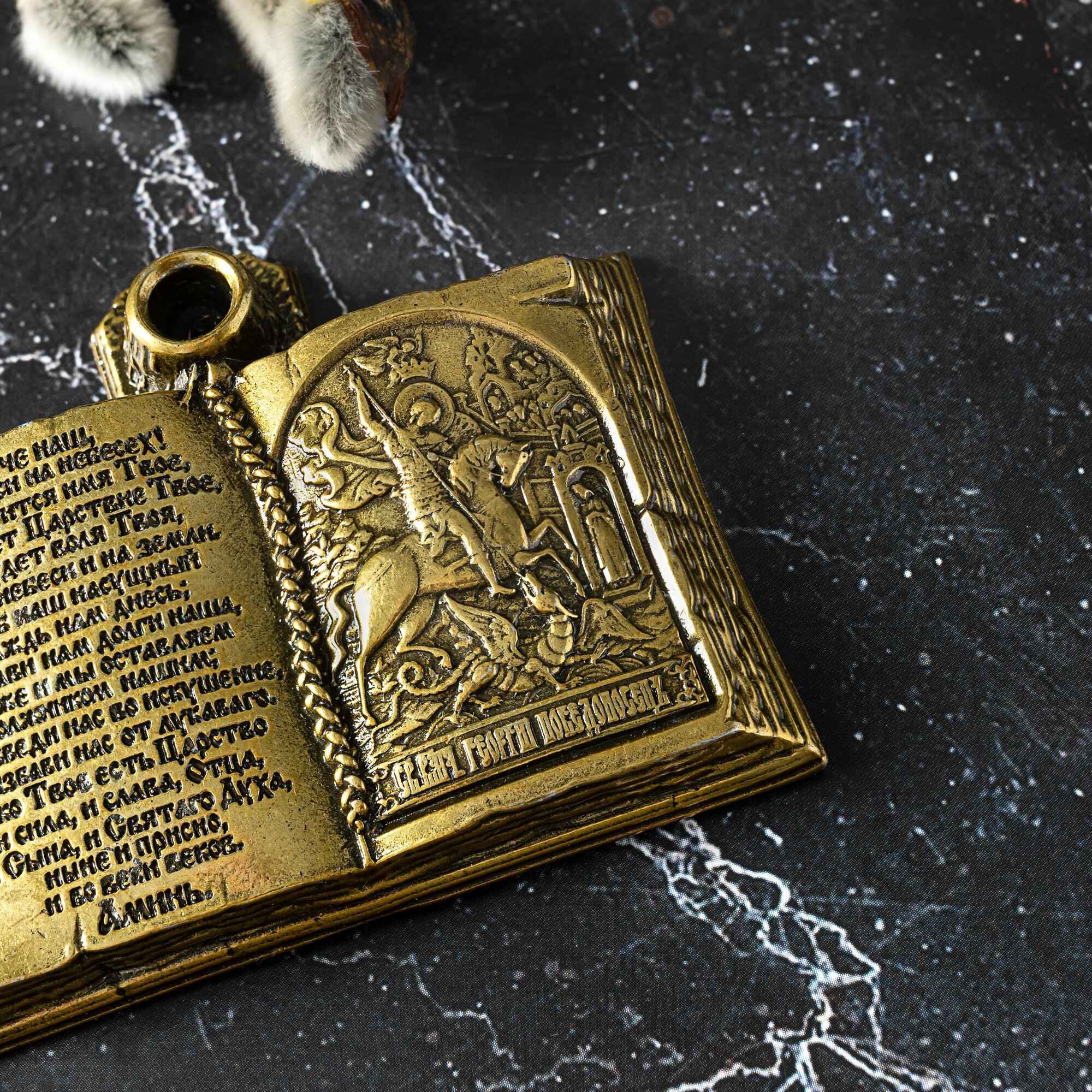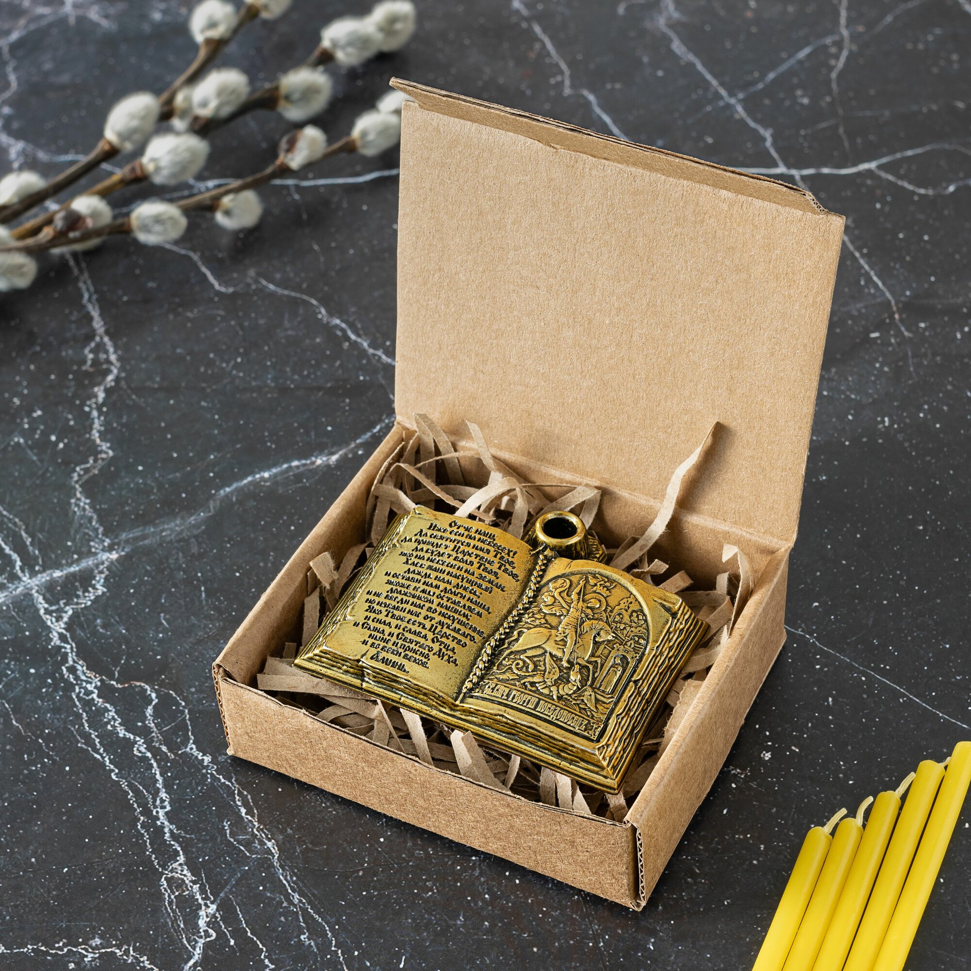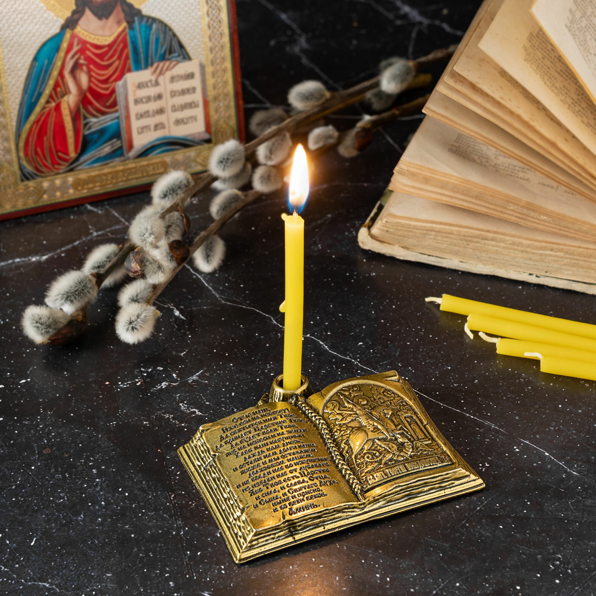 Подсвечник для церковной свечи с иконой Георгия Победоносца интересное: