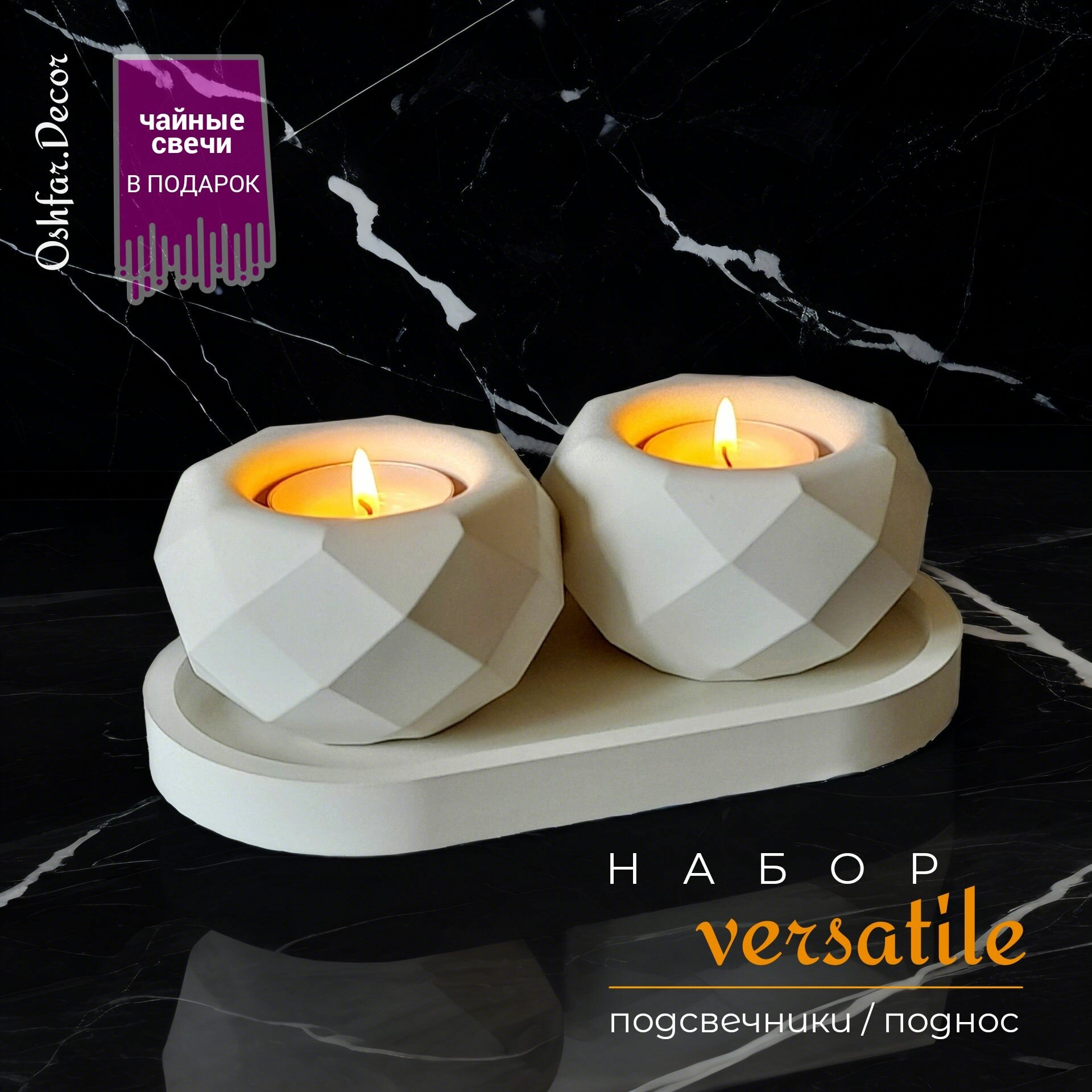 СохранитьПодсвечники Versatile из гипса на белом подносе, набор из 3 предметов. Oshfar Decor интересное: