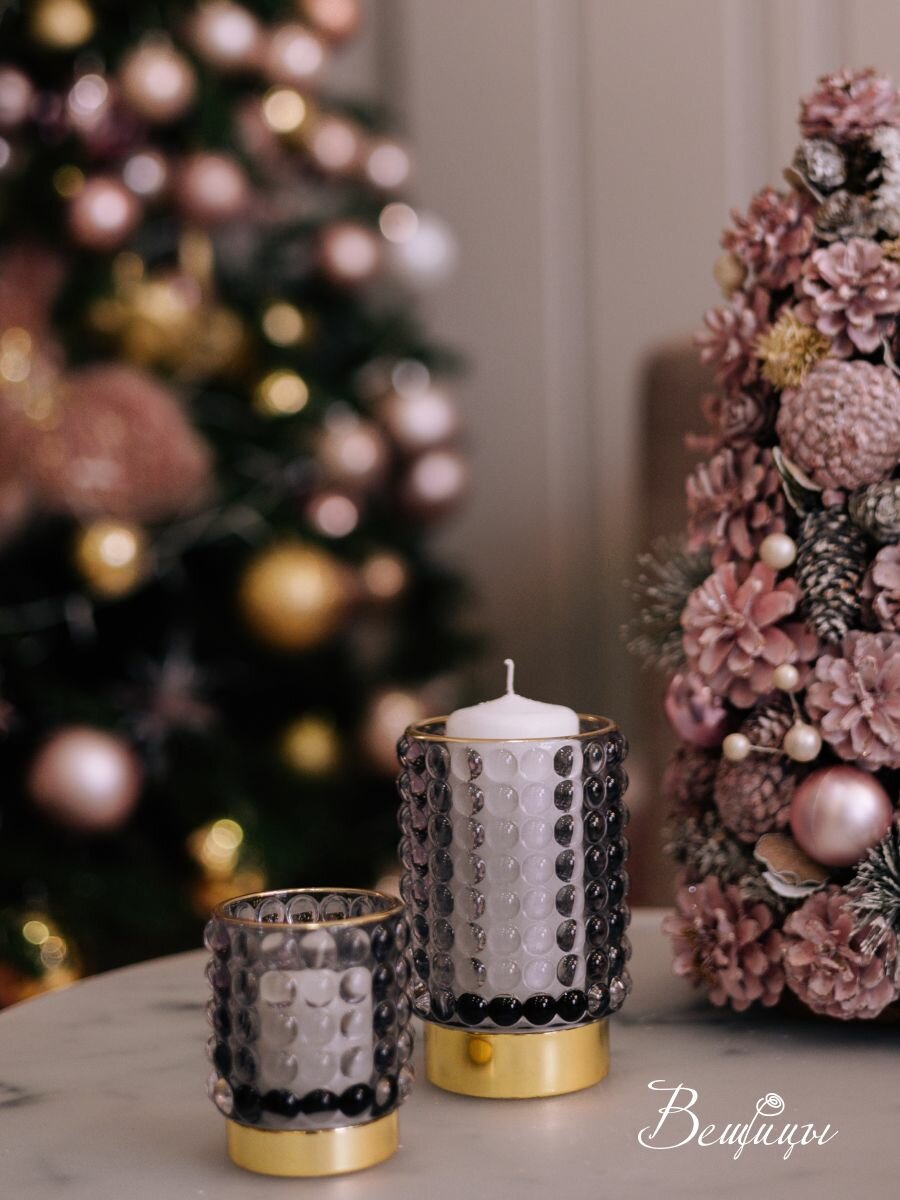 Подсвечник декоративный Вещицы из цветного стекла 12,5 см / Для декора и свечей / Цвет розовый, золотой