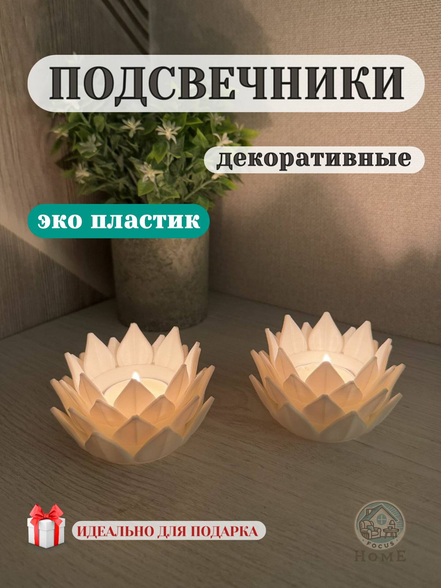 Купить Подсвечник для свечей лотос белый, набор 2 шт/эко пластик
