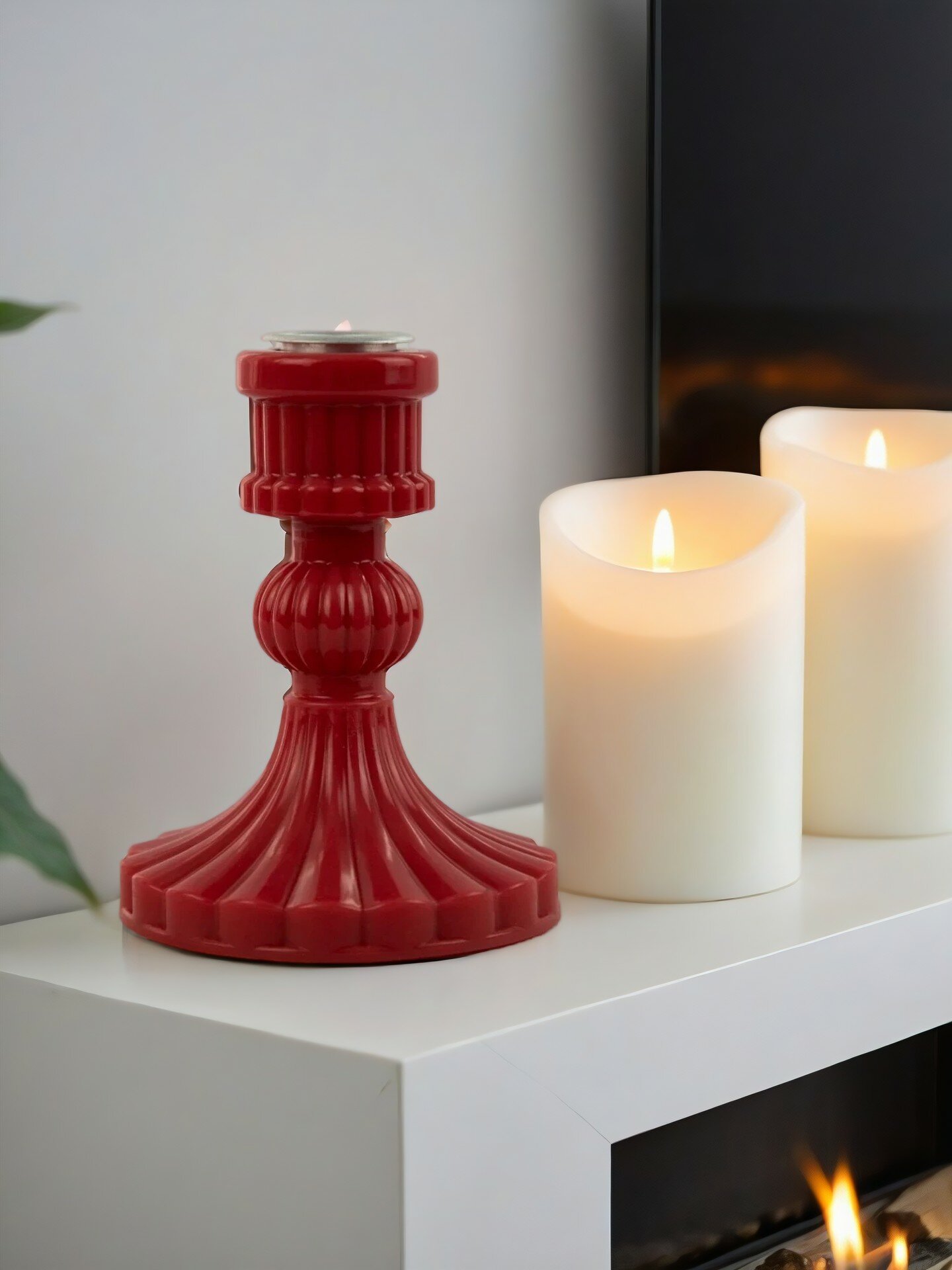Купить Подсвечник для тонкой свечи, литьевой мрамор, высота 10см, ширина в основании 8 см, цвет карминово-красный (04)