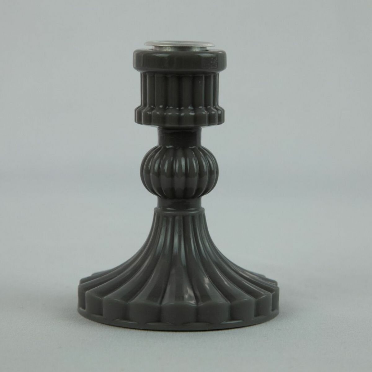 Купить Подсвечник для тонкой свечи, литьевой мрамор, высота 10см, ширина в основании 8 см, цвет серый (03.2)