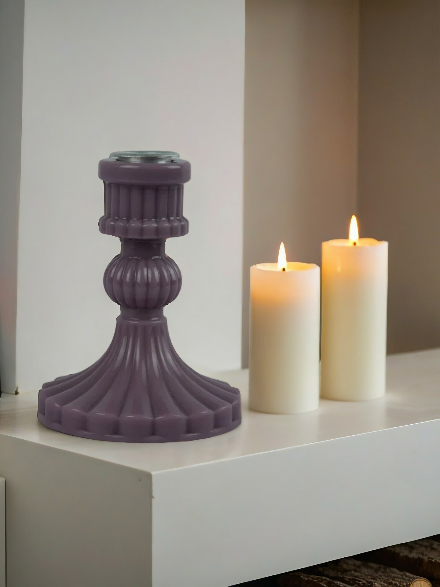 Подсвечник для тонкой свечи, литьевой мрамор, высота 10см, ширина в основании 8 см, цвет сирень (13)