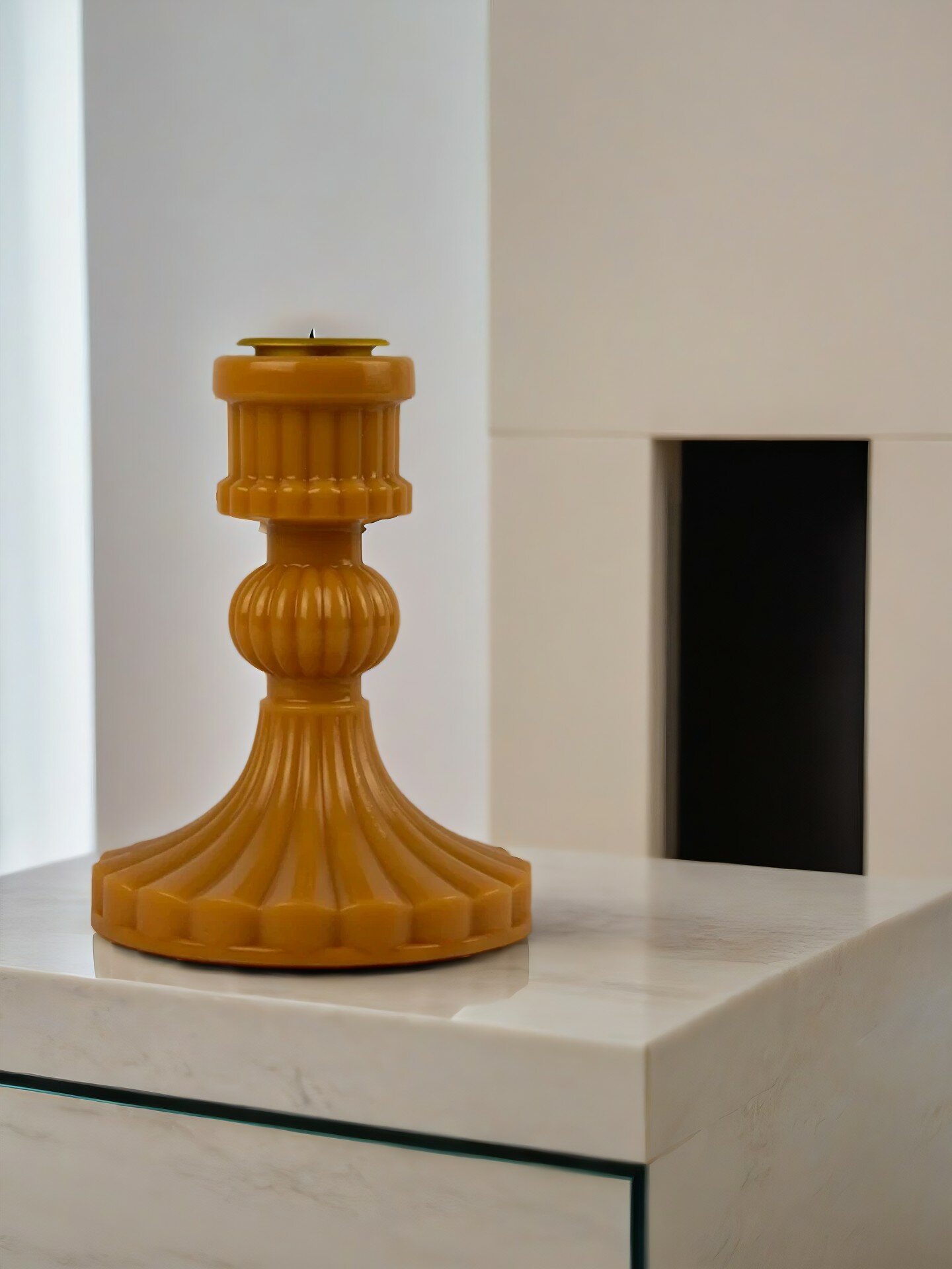 Подсвечник для тонкой свечи, литьевой мрамор, высота 10см, ширина в основании 8 см, цвет красно-оранжевый (06.1)