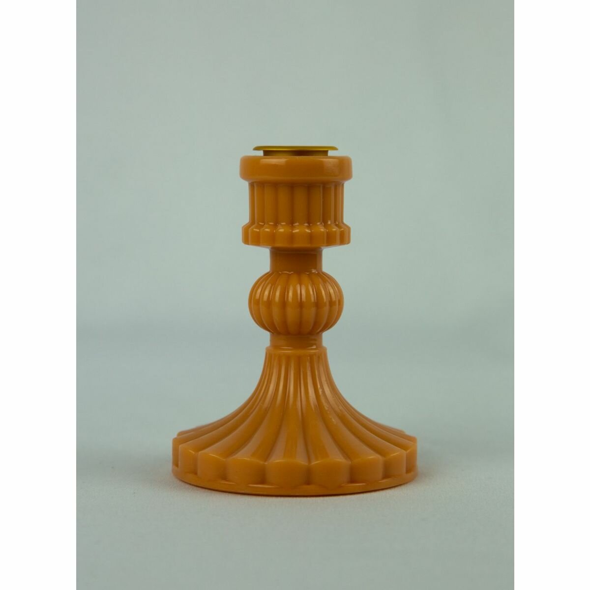 Купить Подсвечник для тонкой свечи, литьевой мрамор, высота 10см, ширина в основании 8 см, цвет светло красно оранжевый (06.2)