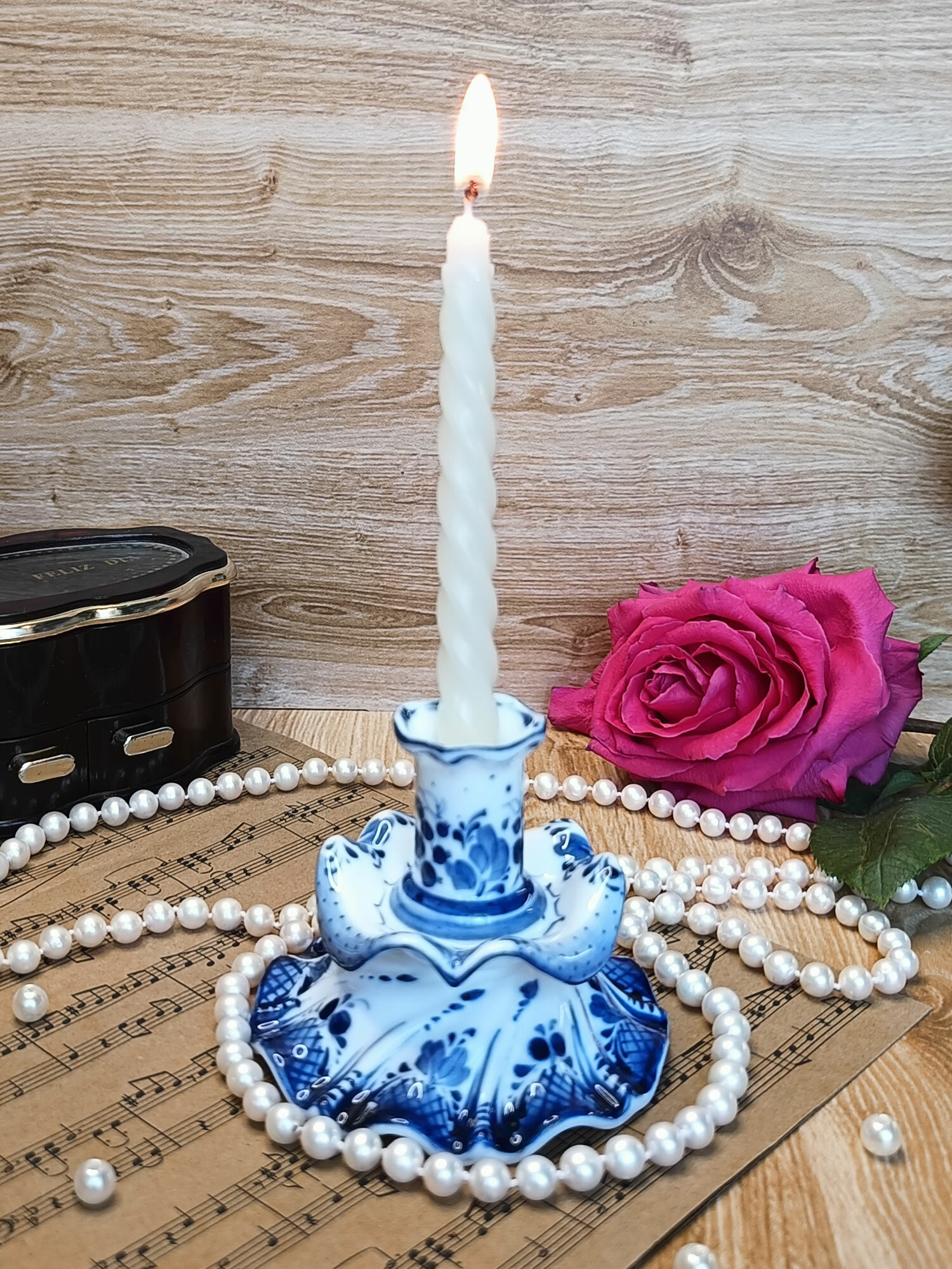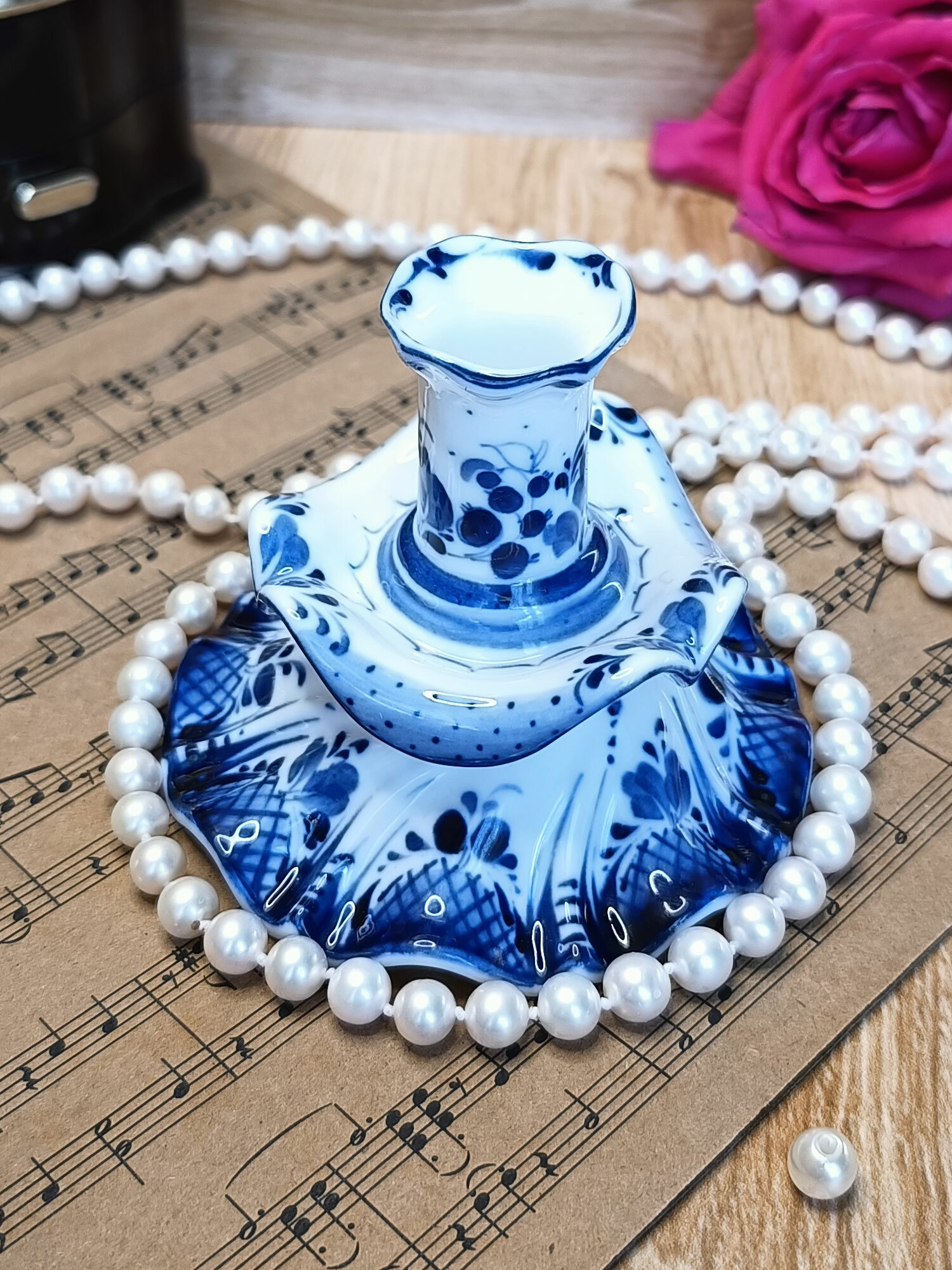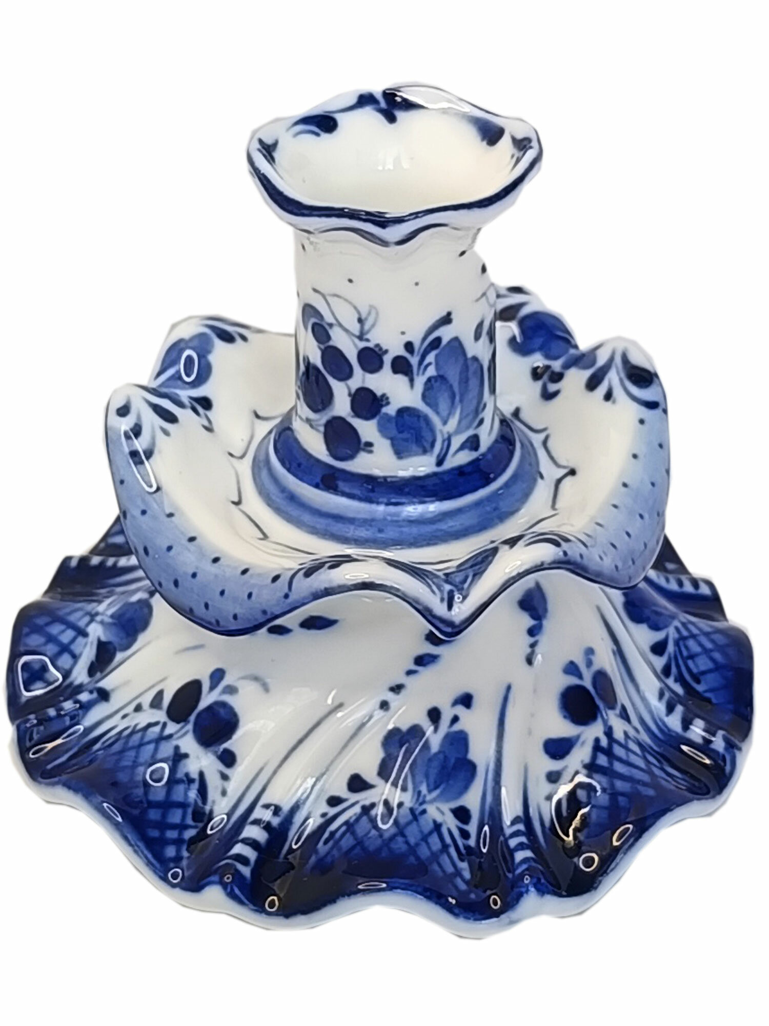 Подсвечник Гжель "Ажурный", (гжельский тонкостенный фарфор, авторская роспись), высота 8 см. интересное: