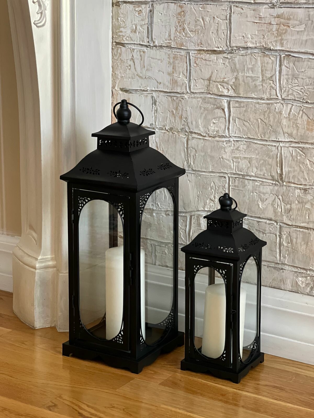 Пара подсвечников фонариков "Узоры" для дома и сада, высотой 51 и 35 см, цвет-черный, металлические интересное: