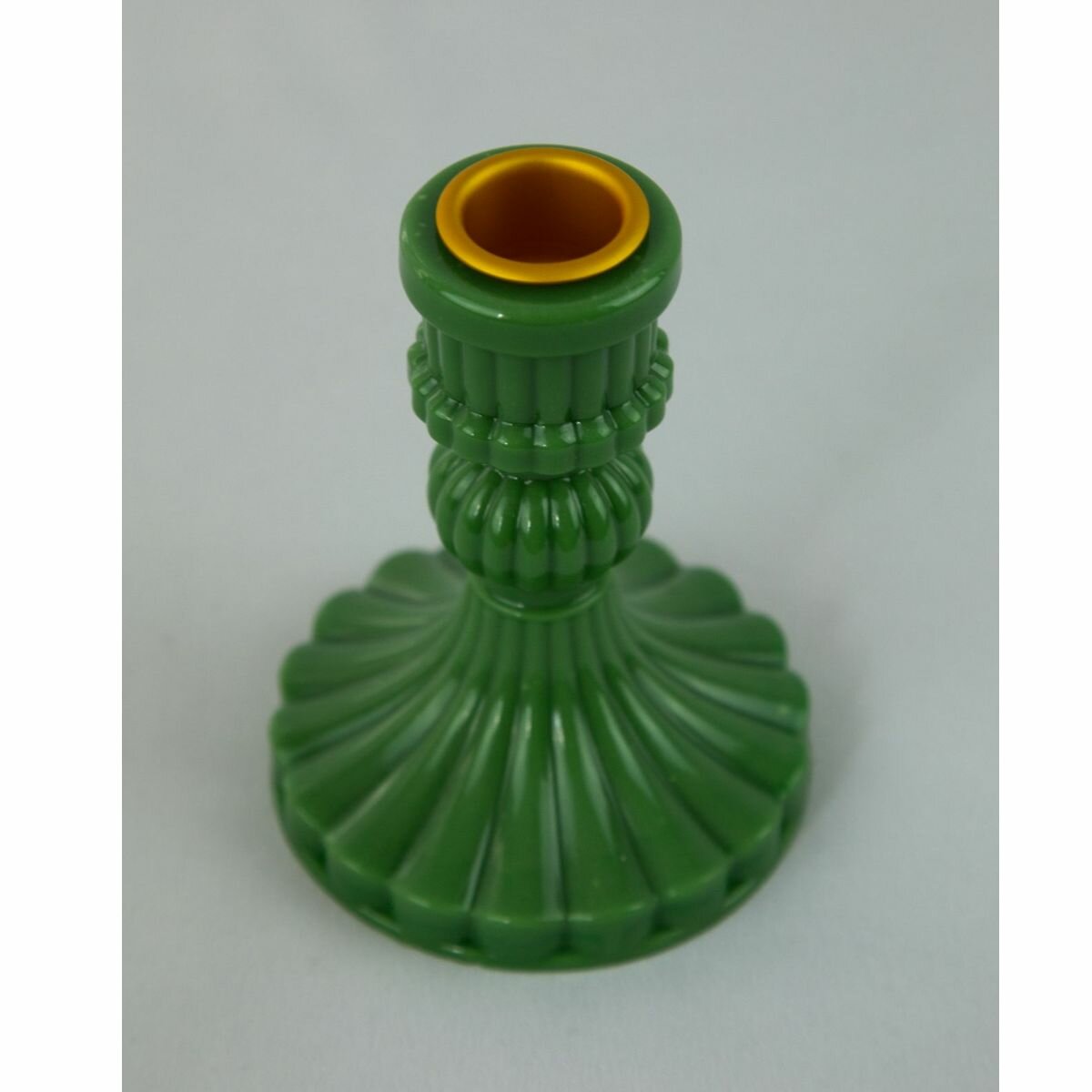 Подсвечник для тонкой свечи, литьевой мрамор, высота 10см, ширина в основании 8 см, цвет зеленый (08.1)