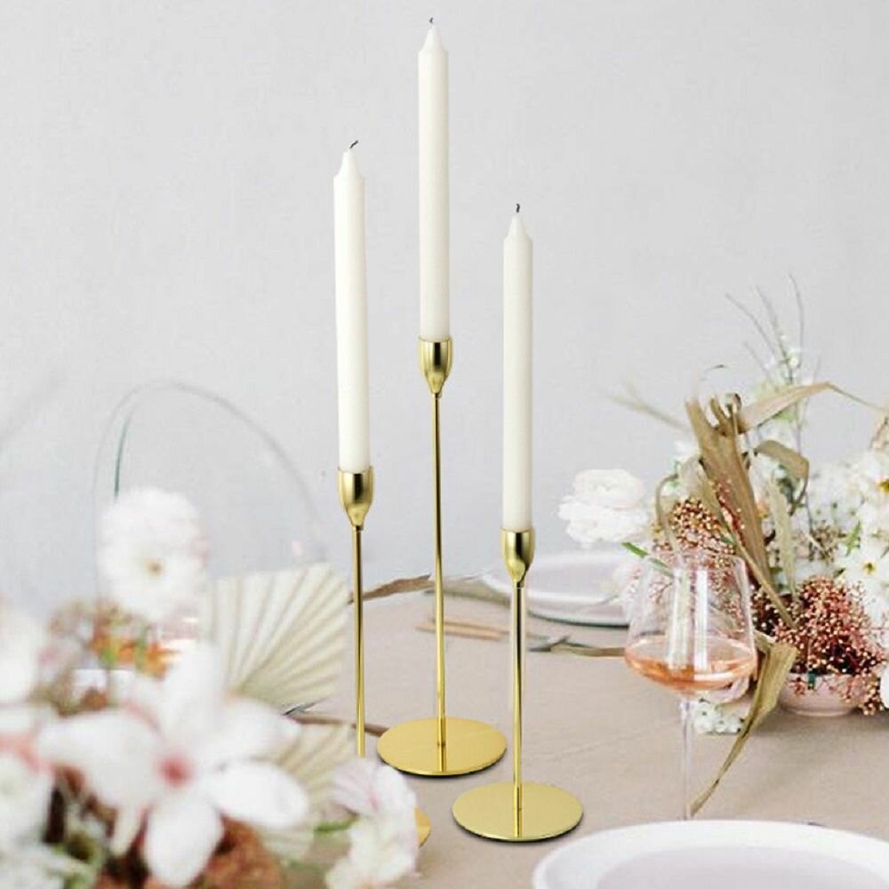 Купить Подсвечники"NORDIK" Золотистый цвет - Лимонный/ для свечей 3 штуки подсвечник высокий металлический новогодний и интерьерный на высокой ножке.