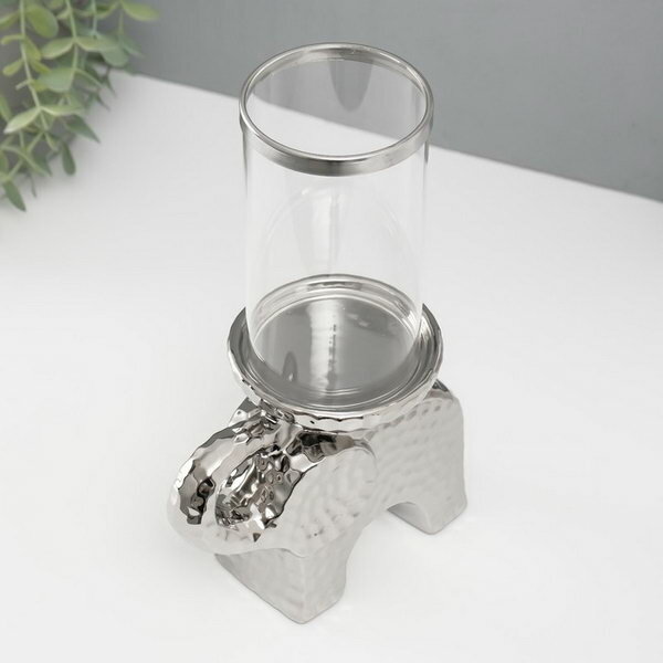 Купить Подсвечник на 1 свечу "Слон", керамика, стекло, d=8 см, серебро, 16x10x27 см