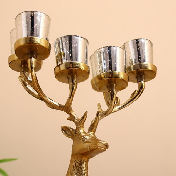 Купить Подсвечник на 6 свечей "Олень" алюминий 23х28х41 см, цвет: золотистый