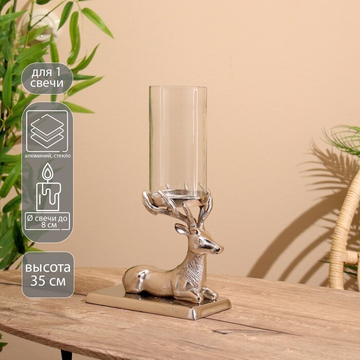 Купить Подсвечник "Олень" алюминий 21х11х35 см, цвет: серебристый, тематика праздника: новый год