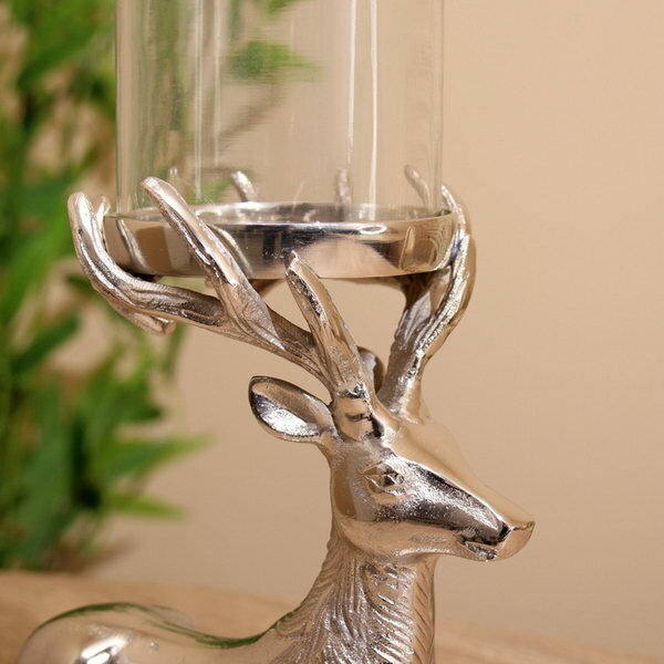 СохранитьПодсвечник "Олень" алюминий 21х11х35 см, цвет: серебристый, тематика праздника: новый год интересное: