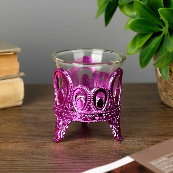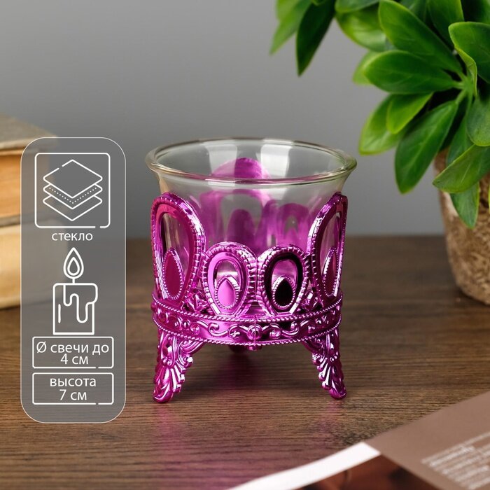 Купить Подсвечник на 1 свечу «Капельки», пластик, стекло, розовый, 7×6×6 см