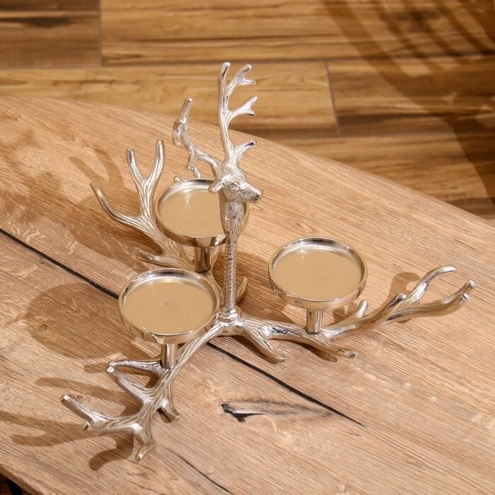 Подсвечник "Олень" алюминий 21х11х35 см, цвет: серебристый, тематика праздника: новый год