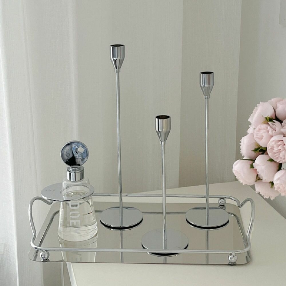Подсвечники "NORDIK" серебро для свечей 3 штуки подсвечник высокий металлический новогодний и интерьерный на высокой ножке. интересное:
