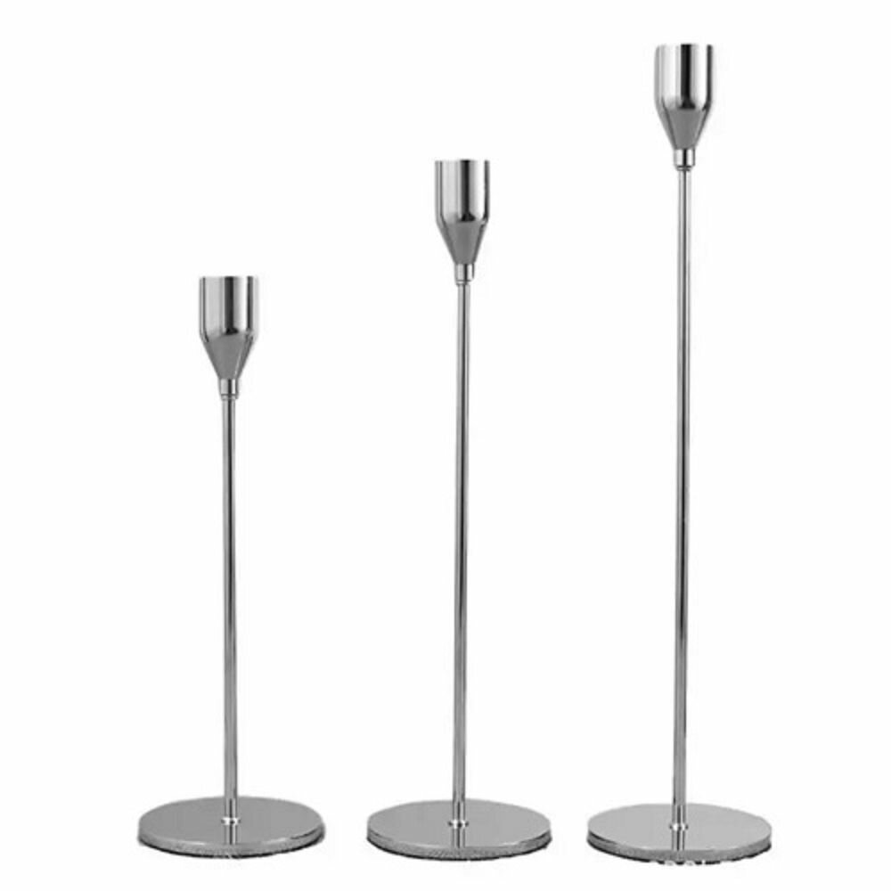 Купить Подсвечники "NORDIK" серебро для свечей 3 штуки подсвечник высокий металлический новогодний и интерьерный на высокой ножке.