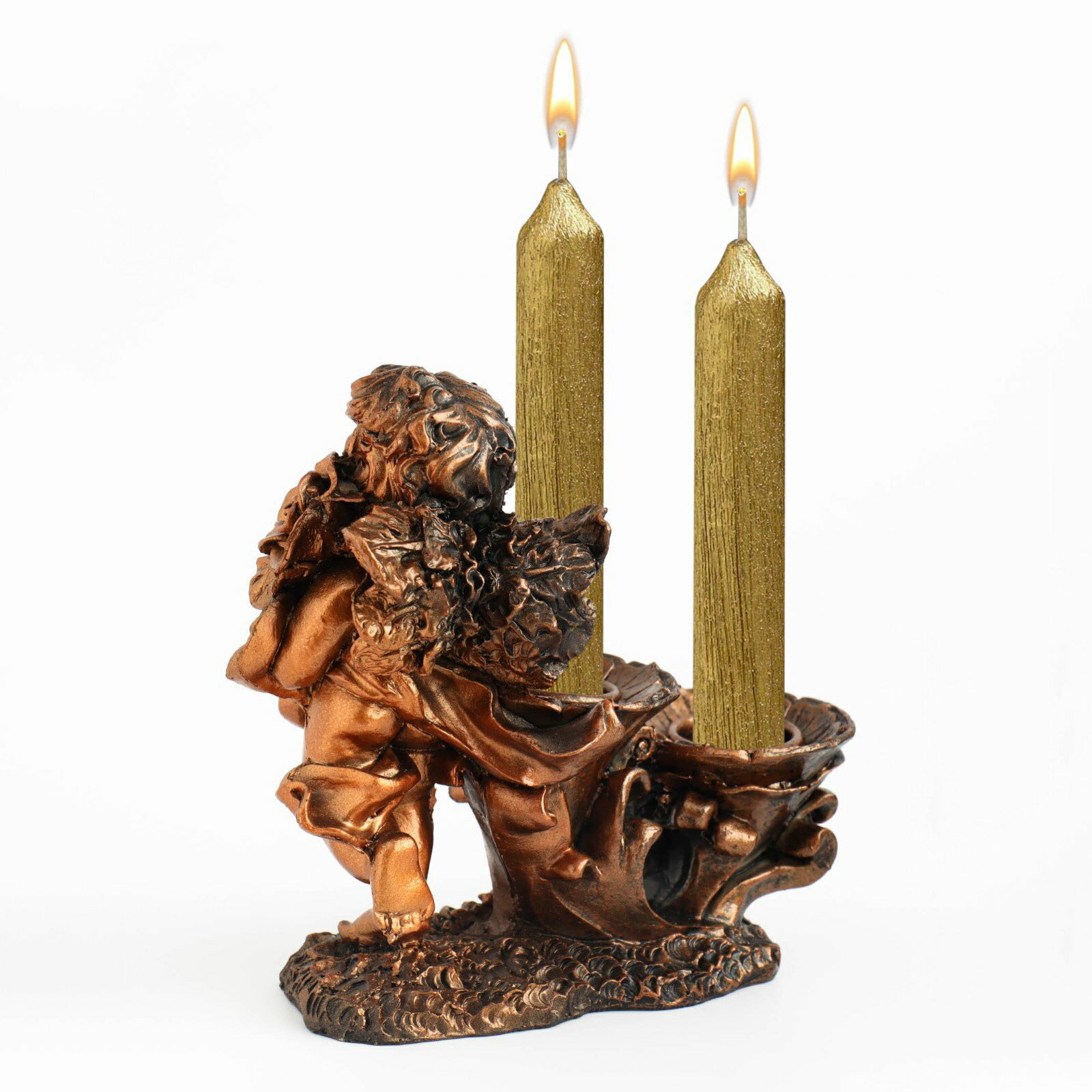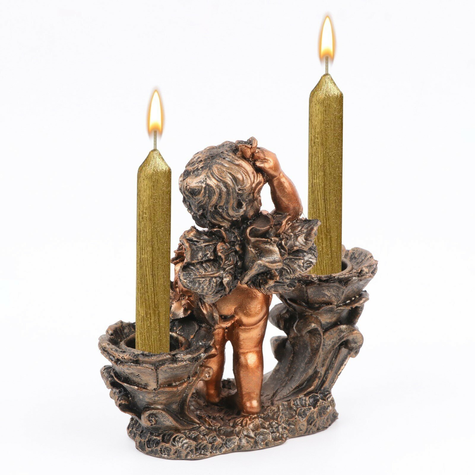 Купить Подсвечник на 2 свечи "Ангелочек стоит", полистоун, 11x5.5x12 см