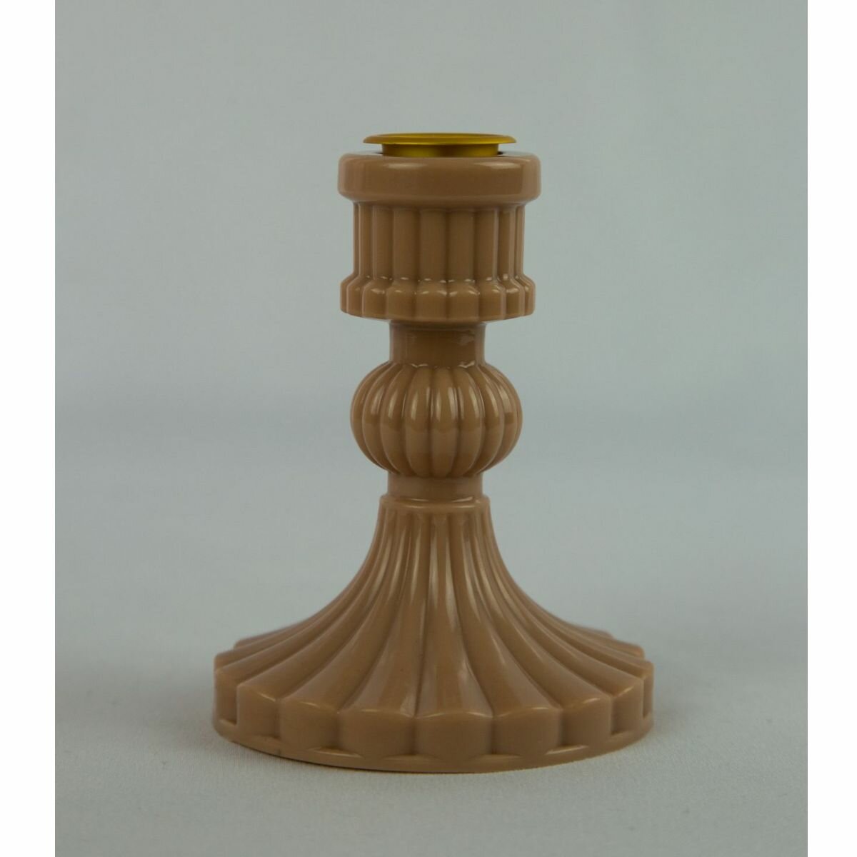 Подсвечник для тонкой свечи, литьевой мрамор, высота 10см, ширина в основании 8 см, цвет персиковый (06.3)