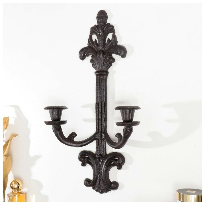Купить Металлический подсвечник настенный на 2 свечи «Канделябр. Рапсодия», чугун, 41.6×8×23.8 см
