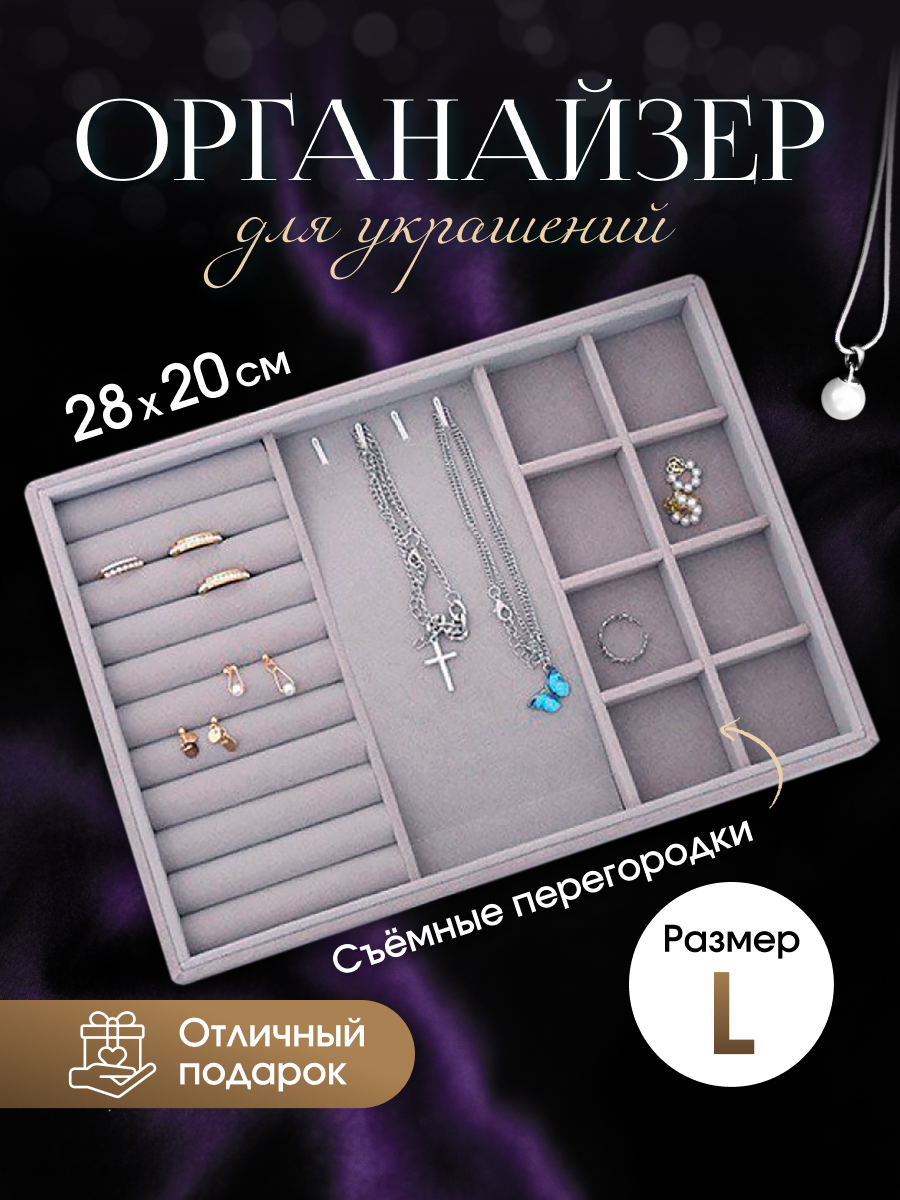 Органайзер для украшений СИЛА ДОМА, 20х3х28 см, серый интересное: