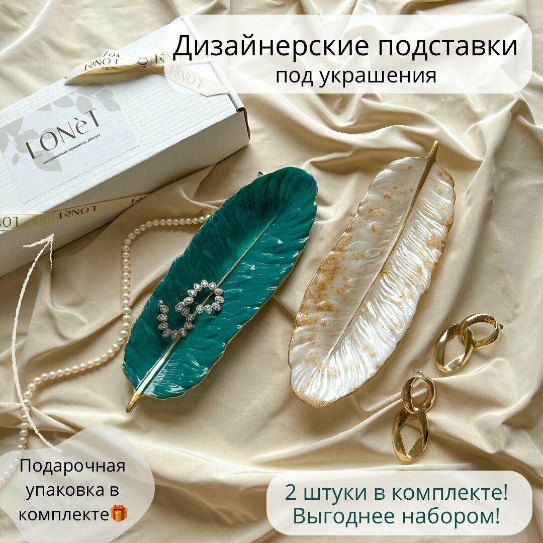 Подставка для украшений LONet, 8х2х23 см, золотой, зеленый, белый интересное: