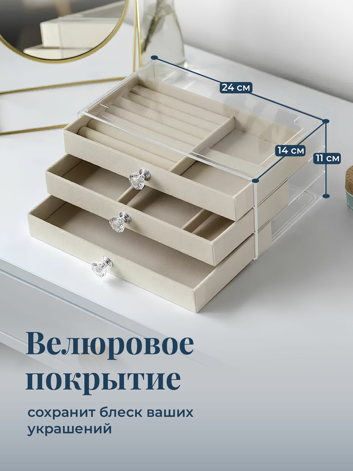 Органайзер для серег REVOLUT, 14х24 см, бежевый интересное: