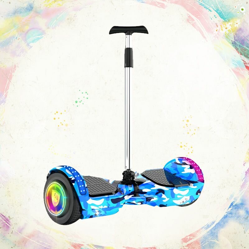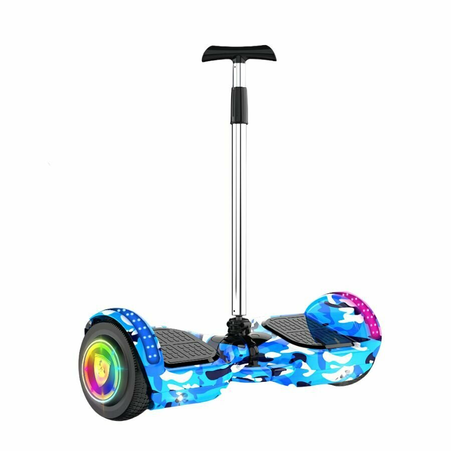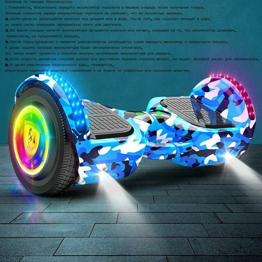 Гиромобиль, диаметр: 7 (дюймов), синий камуфляж, Bluetooth-музыка, съемные подлокотники, разноцветные светящиеся колеса интересное: