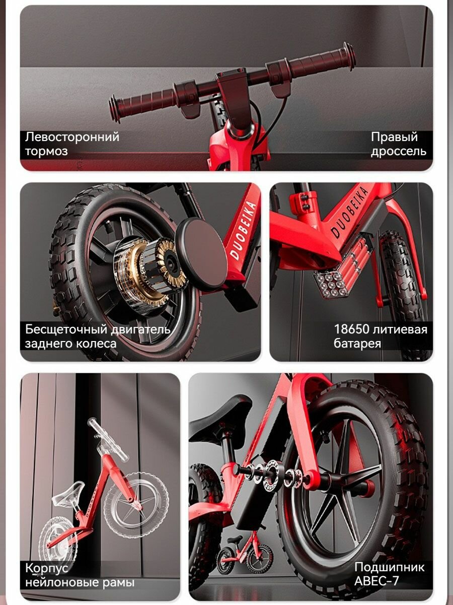 Электровелосипед детский, односкоростной, с дисковыми тормозами, черный, до 100кг интересное: