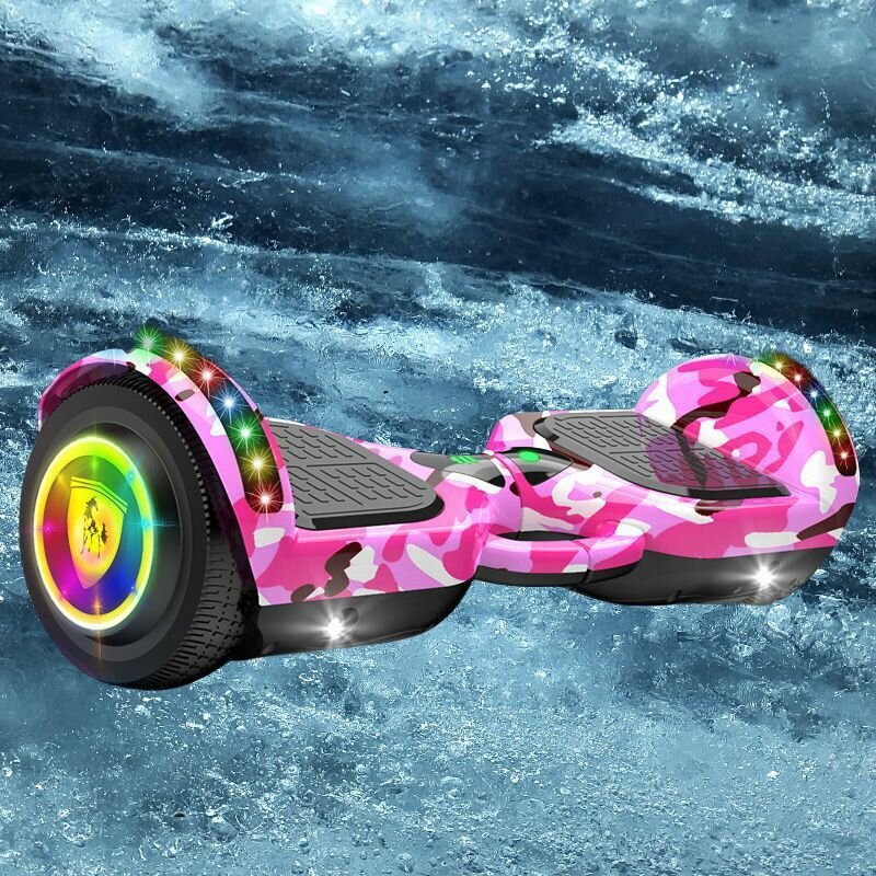 Гироскутер, диаметр: 7 (дюймы), Камуфляжно-розовый, Съемные подлокотники, Красочное светящееся колесо интересное: