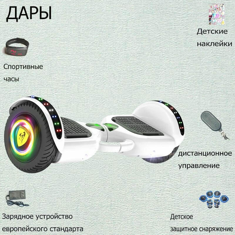 Гироскутер, диаметр: 8 (дюймы), Классический белый цвет, Съемные подлокотники, Красочное светящееся колесо интересное: